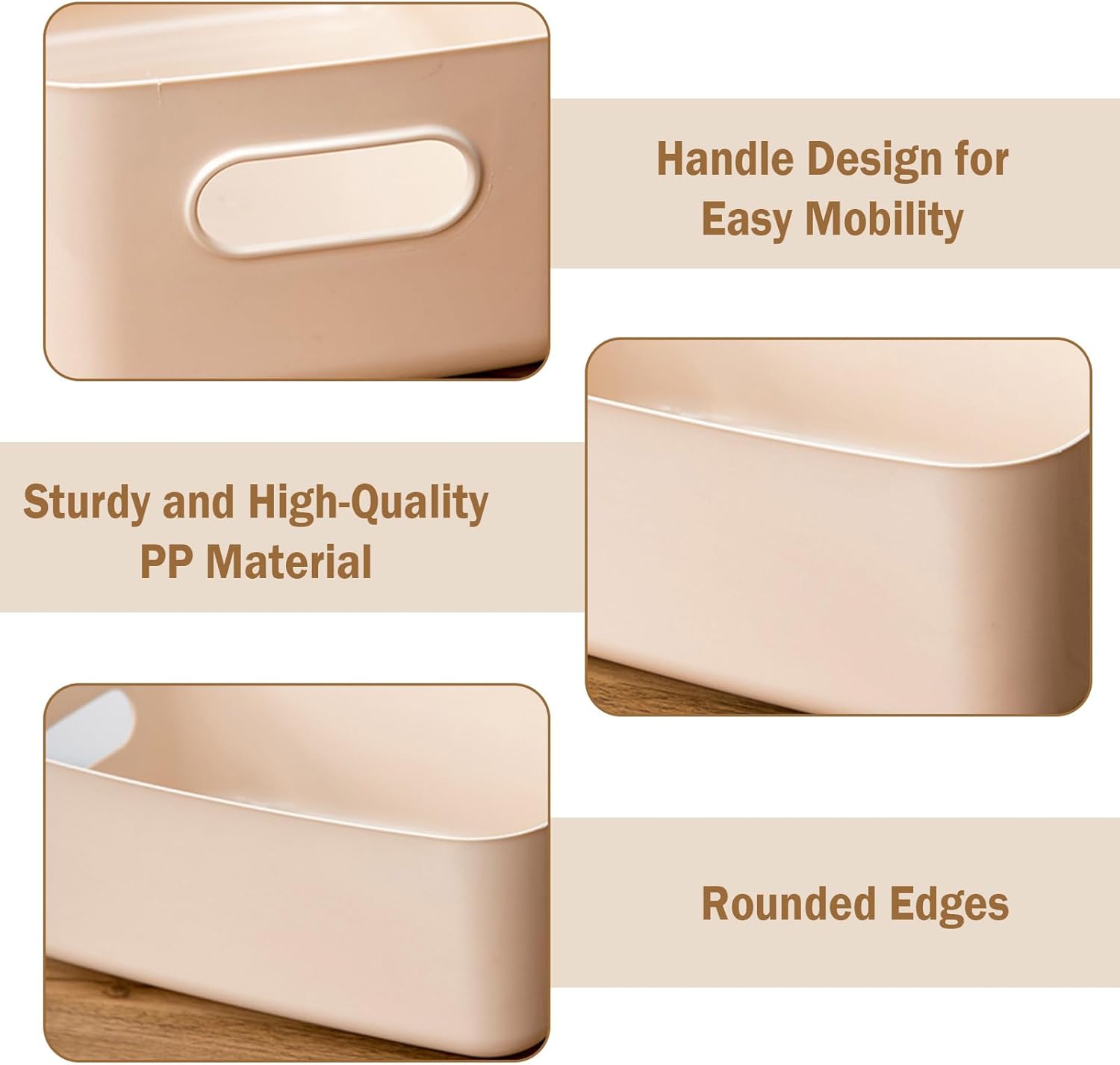 COVRA 2-Pack Plastic Storage Bins, Small Storage Baskets, Organizers for Home & Office, 9.6 x 6.3 x 4.7 Inches (Brown)