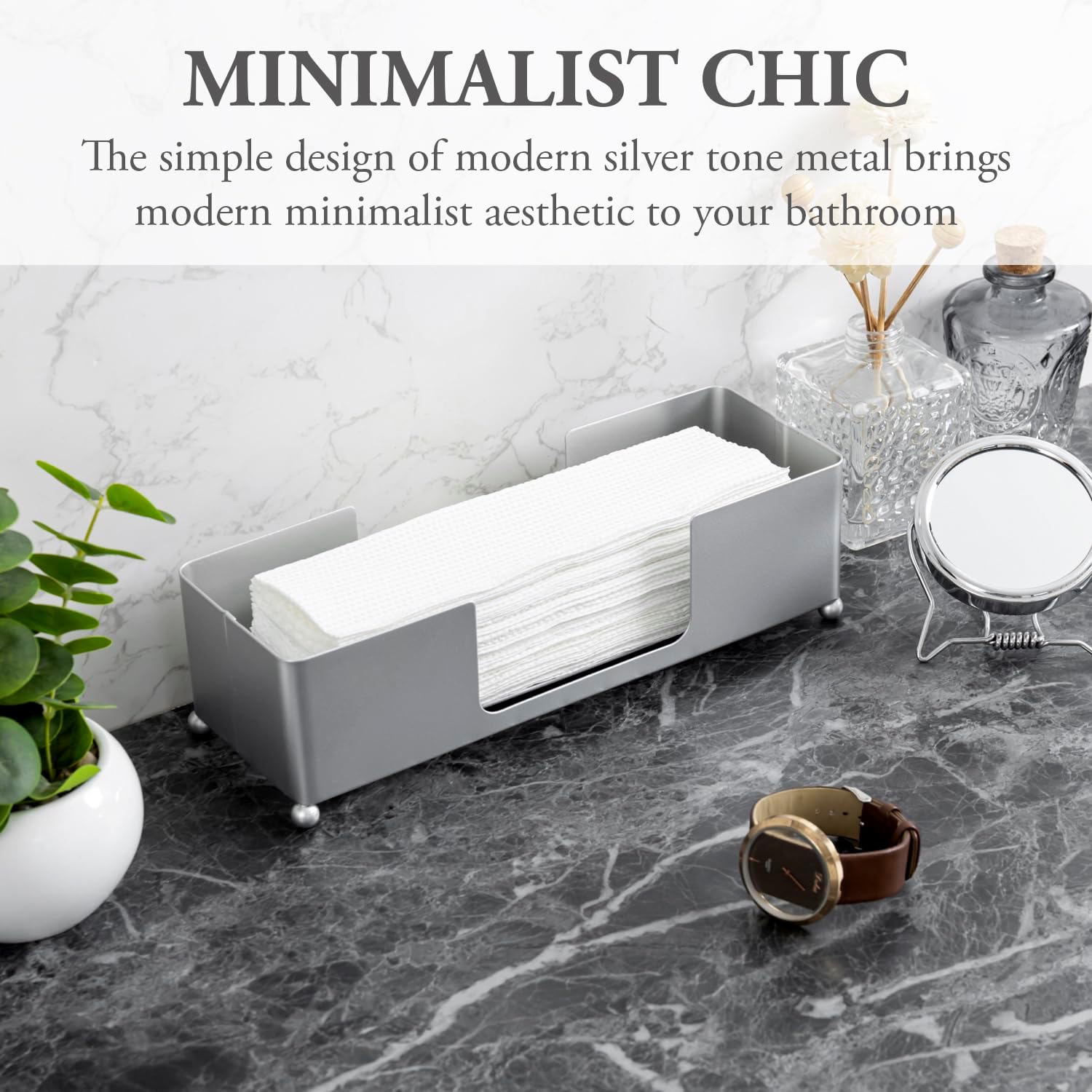 MyGift Metal Tabletop Folded Hand Towel Holder, Modern Silver Tone Commercial Countertop Tissue Dispenser Tray for Trifold, C-Fold and Z-Fold Towels, Set of 2