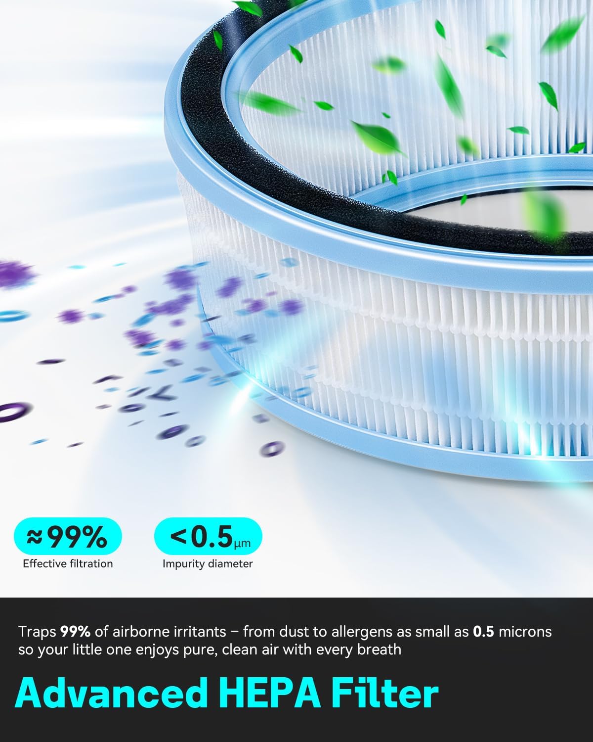 - ENHANCED AIR & WATER FILTRATION: The HEPA filter and the wick filter together enhance air quality and maintain a healthy humidity level—ideal for bedrooms, nurseries, and baby rooms
