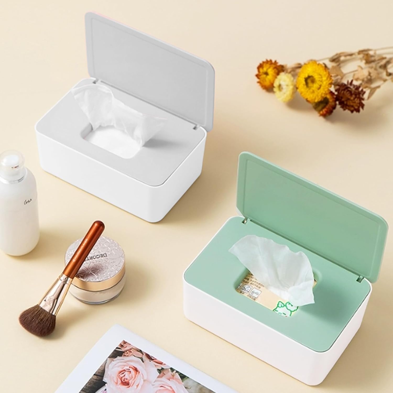 - Widely Use :The wipes storage container is suitable for kitchen, bedroom, bathroom, office, car, etc. Not only can keep wet wipes but also face wipes, flushable toilet wipes, or makeup remover wipes in these adorable reusable dispensers.