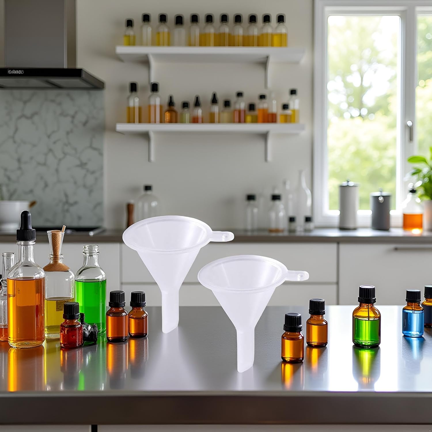 - COMPACT SIZE: Mini funnels designed for precise pouring into small-neck bottles and vials, ideal for home and professional use
