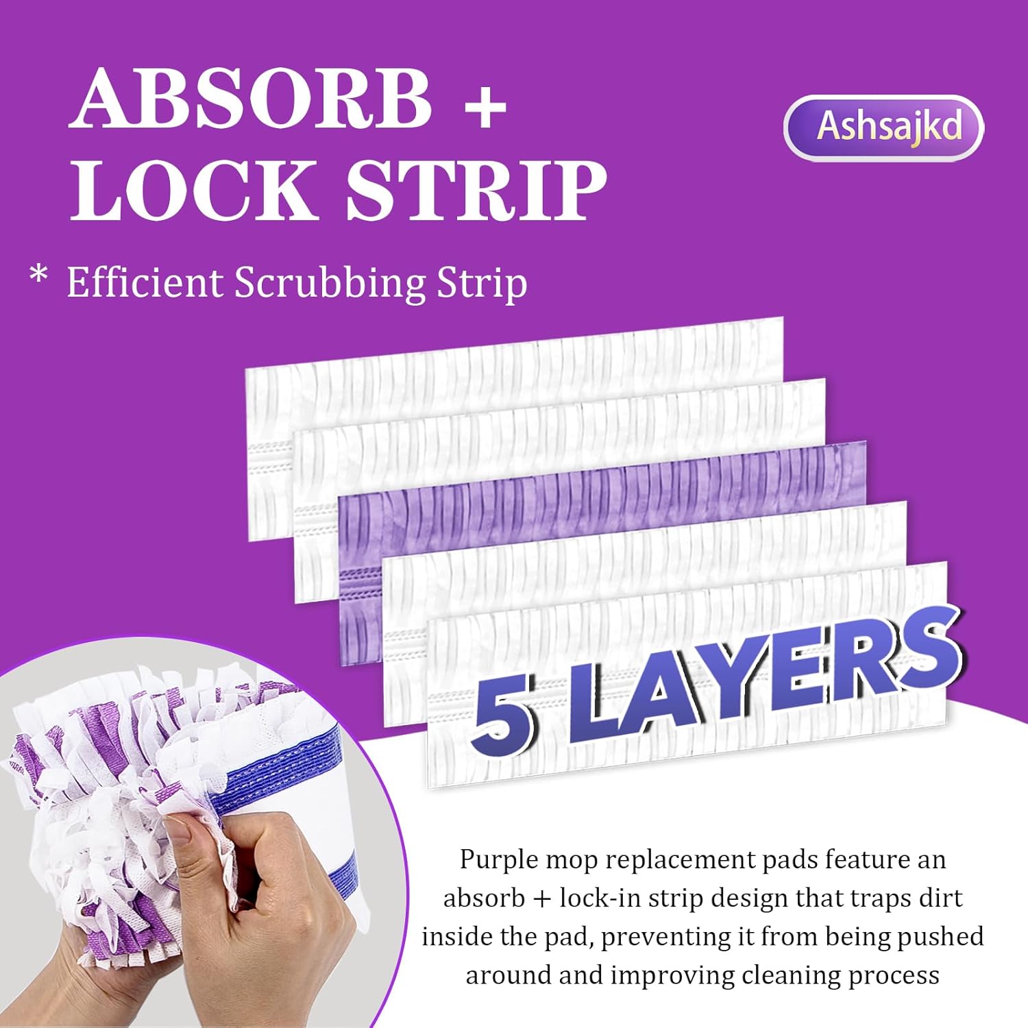 - Strong Absorption: These purple mop replacement pads are very thick and made of good materials, thereby quickly absorbing water, and the floor will be dry in a few seconds, while mopping the floor It won't leave any traces afterward