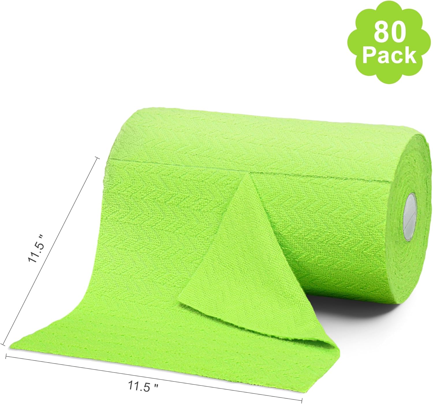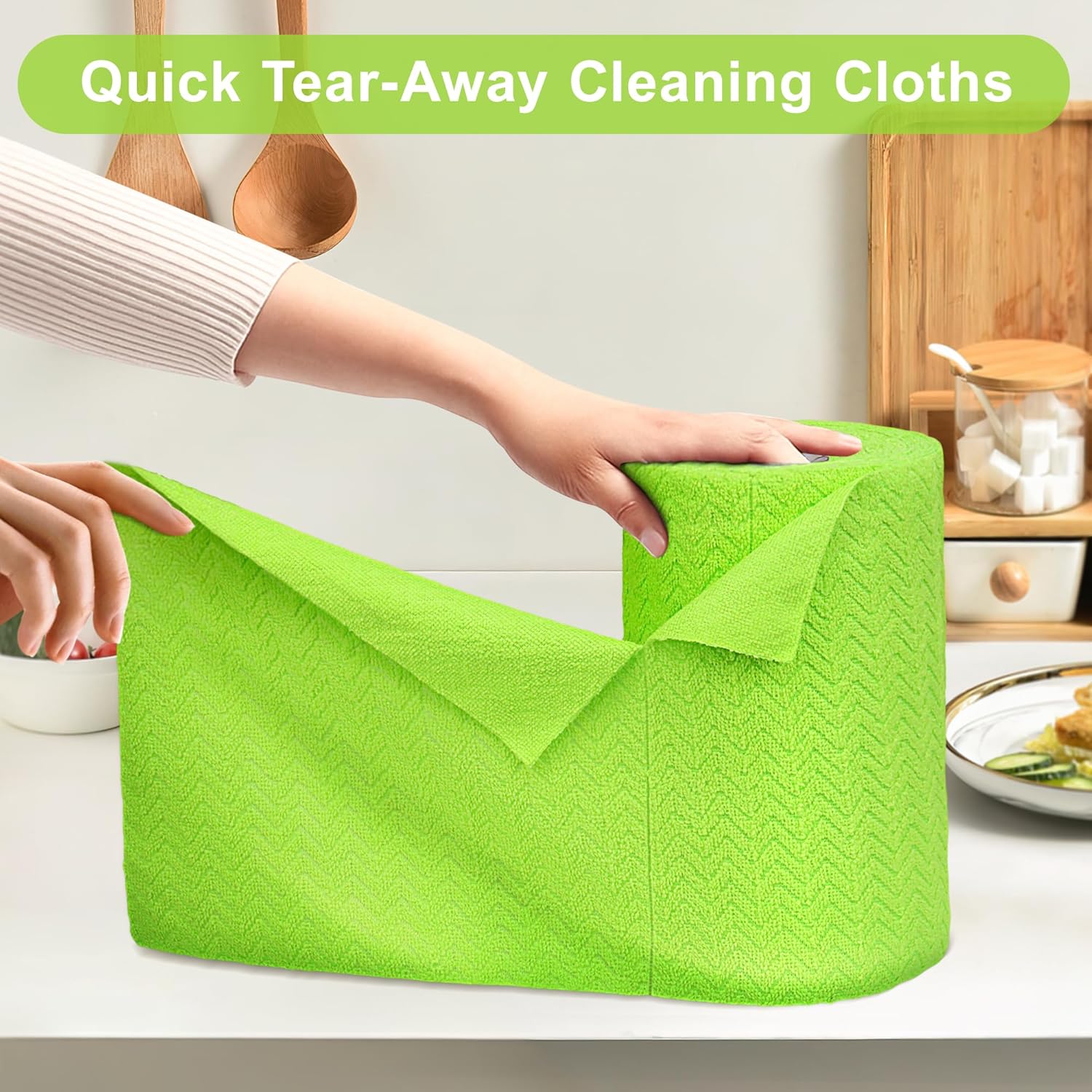- TEAR-AWAY DESIGN: Our microfiber cleaning cloths are on a roll like paper towels and you can tear off a cloth whenever you need it. There are 80 pack cleaning cloths in a roll, which is enough to fulfill your daily use needs