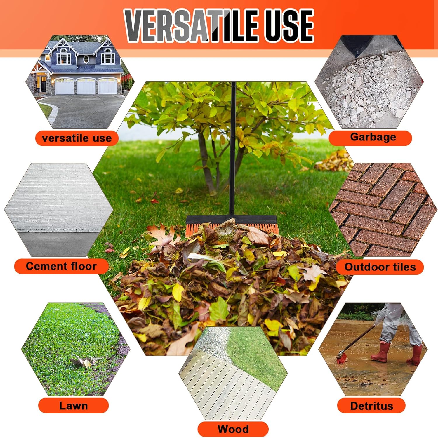 - Effortlessly Sweep Away Dirt and Debris: with 6 layers of stiff bristles, this driveway push broom is appropriate for sweeping heavy things like soil, sand, snow and leaves