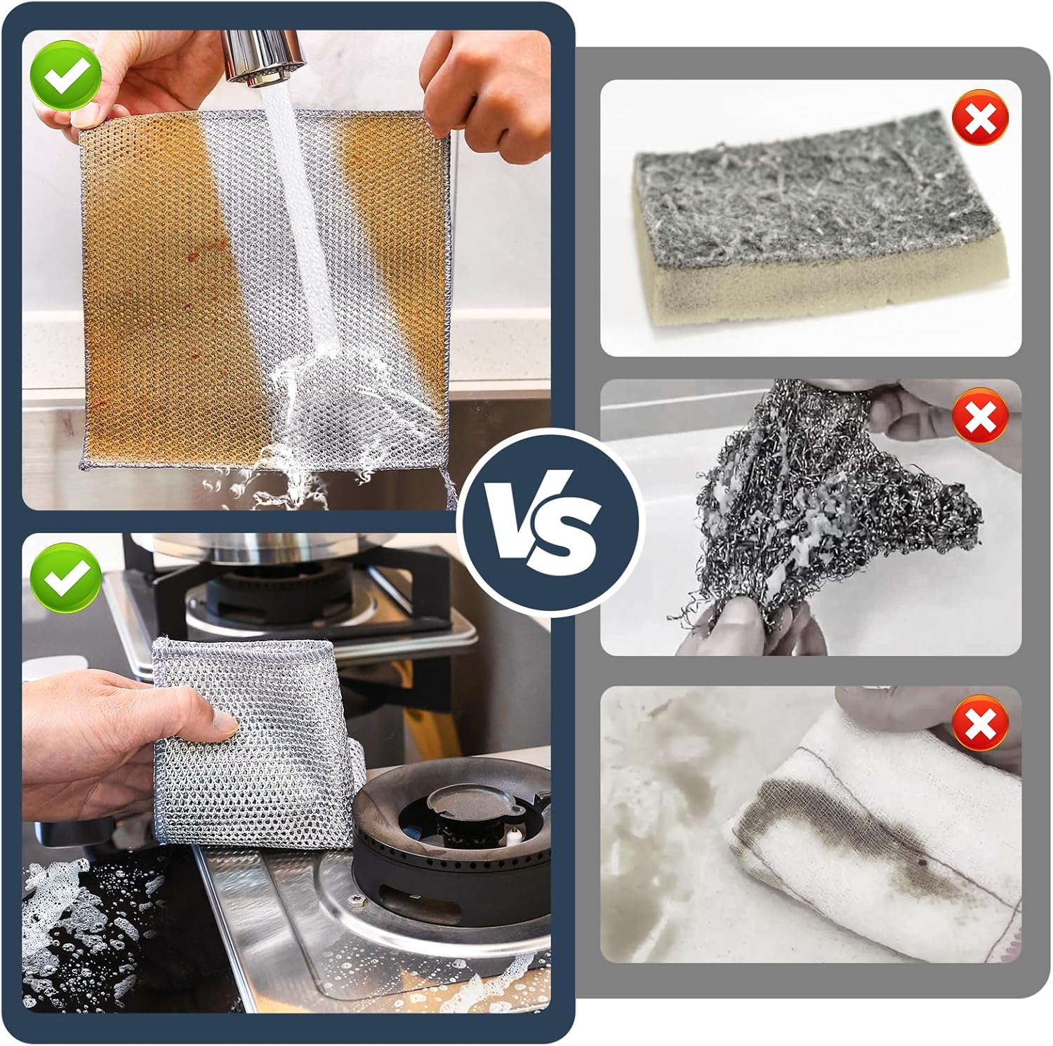 - 【𝐏𝐨𝐰𝐞𝐫𝐟𝐮𝐥 𝐂𝐥𝐞𝐚𝐧𝐢𝐧𝐠 𝐟𝐨𝐫 𝐌𝐮𝐥𝐭𝐢𝐩𝐥𝐞 𝐒𝐮𝐫𝐟𝐚𝐜𝐞𝐬】Navona multipurpose wire dishwashing rags for wet and dry, they can effortlessly clean surfaces such as sinks, stovetops, and countertops. Their versatility makes them an indispensable tool in the kitchen, alleviating the burden of various cleaning tasks.