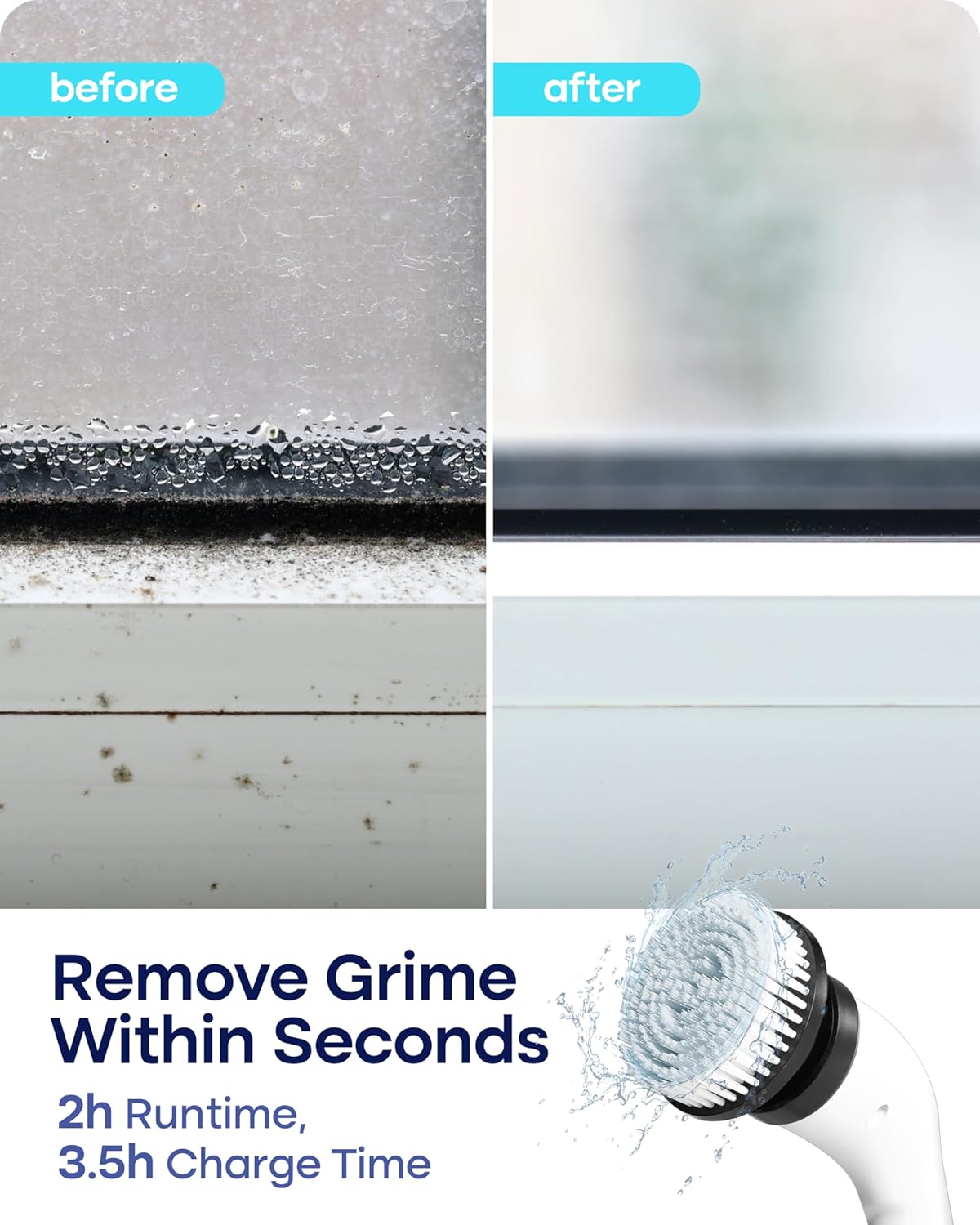 - ✔ 7 Brush Heads for Every Cleaning Task - Includes 7 replaceable heads-flat, pointed, round, sponge, and more-designed for tubs, showers, tile, windows, and even car detailing. All-in-one electric scrubber solution