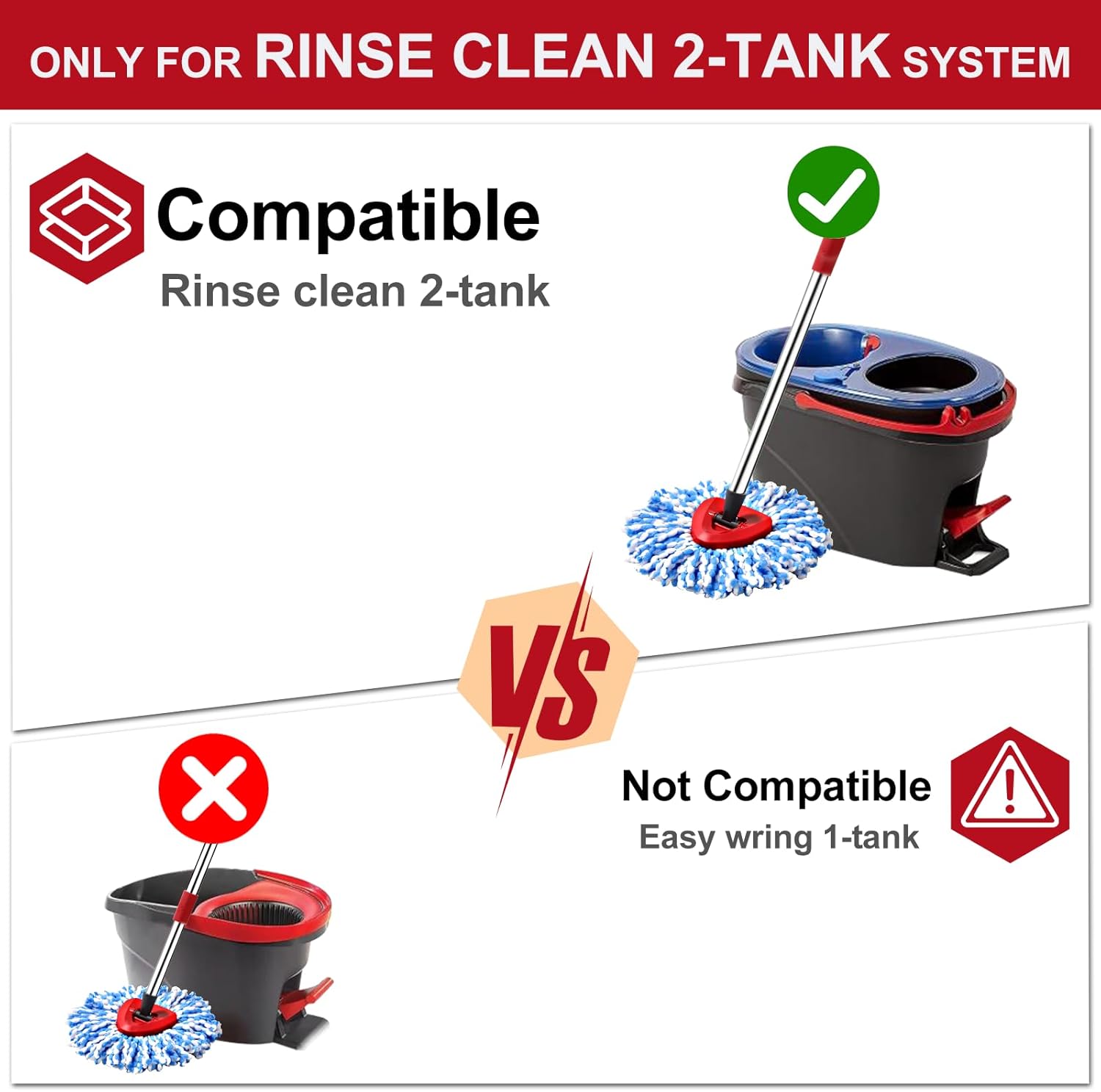- 【For 2-Tank System】Includes 2 The mop heads replacements set combo is only compatible with 2-Tank system, NOT compatible with 1-Tanks EasyWring system.