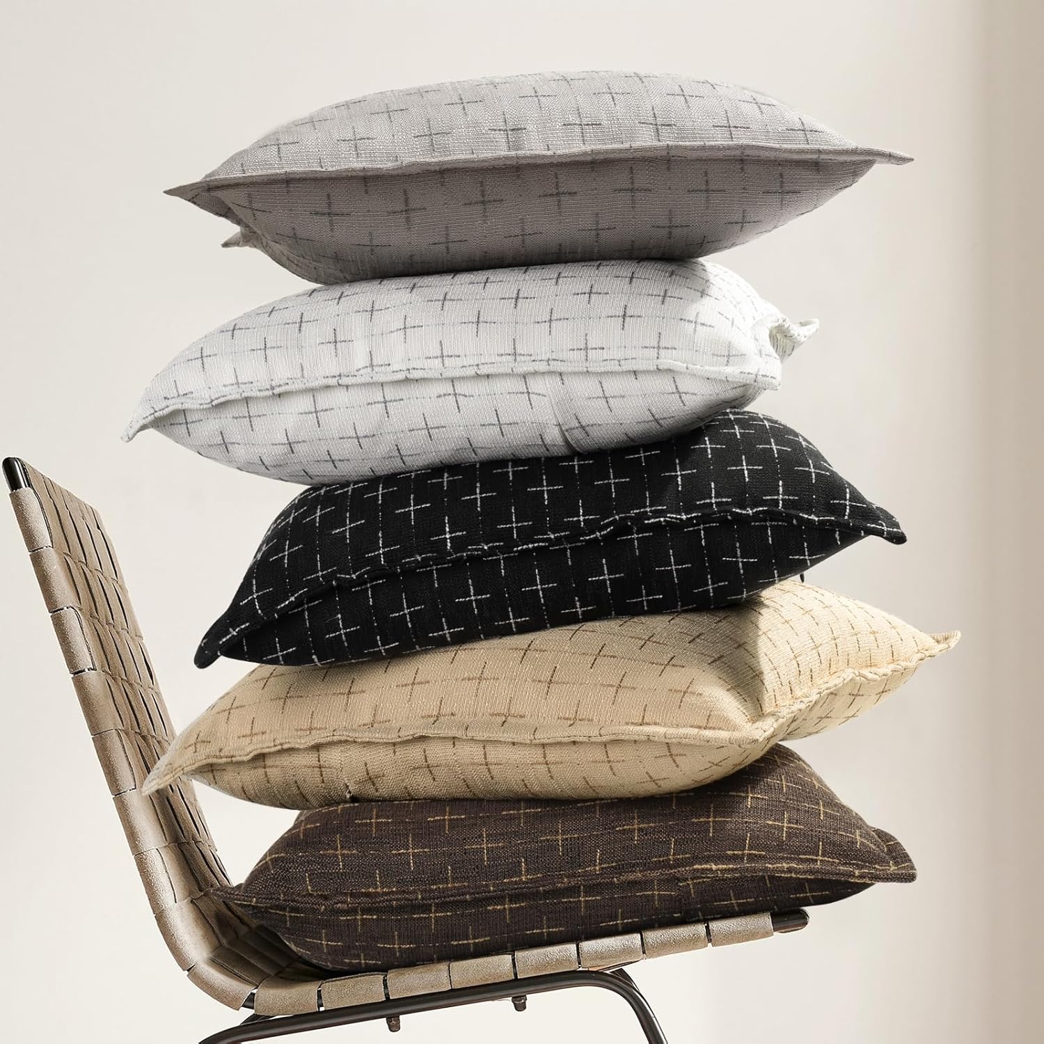 - 2.【Design with Flange Edges】This elegant pillow cover is designed with a flange at the edges. All fabric edges are meticulously sewn to prevent fraying and ensure lasting durability. The combination of the rich yarn-dyed jacquard fabric and the classic edge detail adds a sophisticated and refined touch to your home decor.