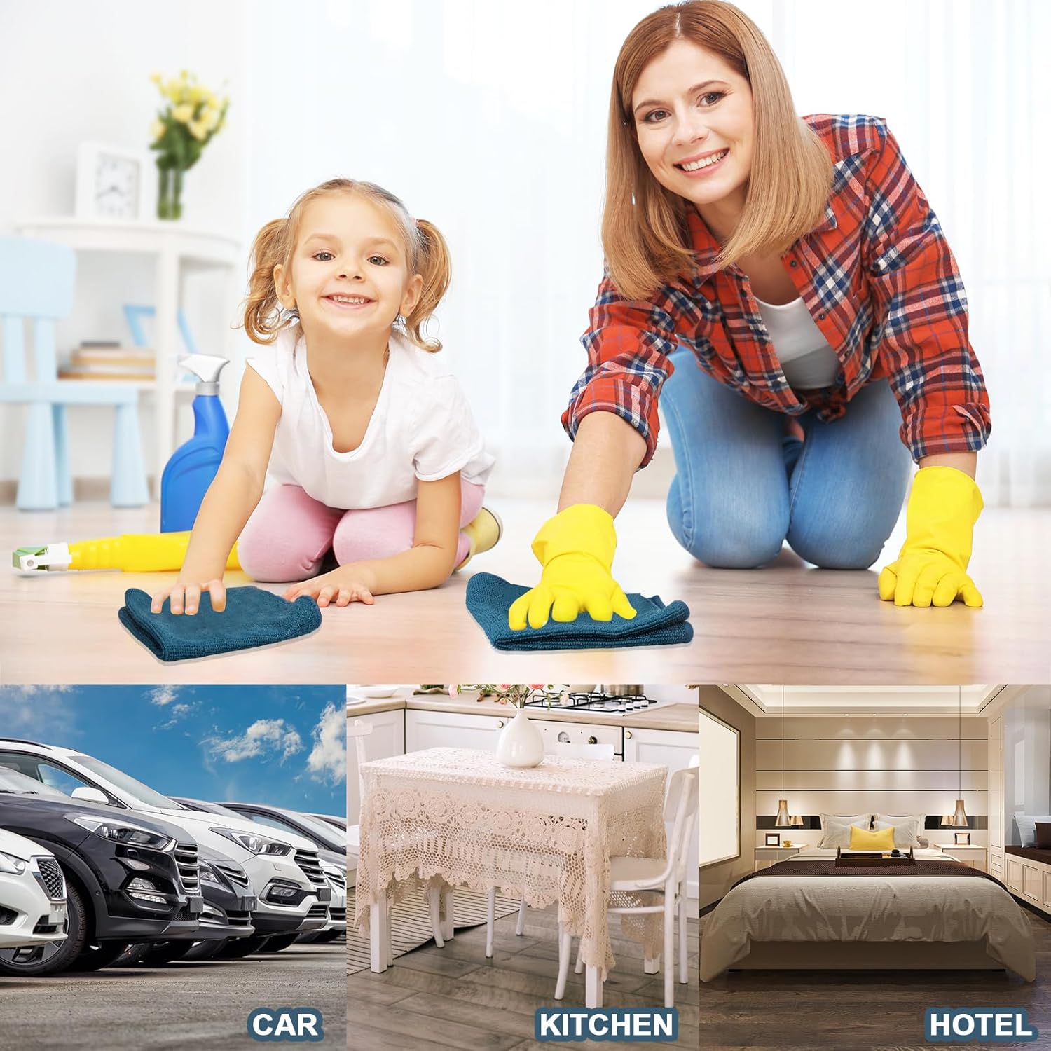Tenare 100 Count12'' x 12'' Microfiber Cleaning Cloths Reusable Cleaning Rags Bulk Microfiber Towels Softer Highly Absorbent Washcloths for House Kitchen Car Window(Teal)