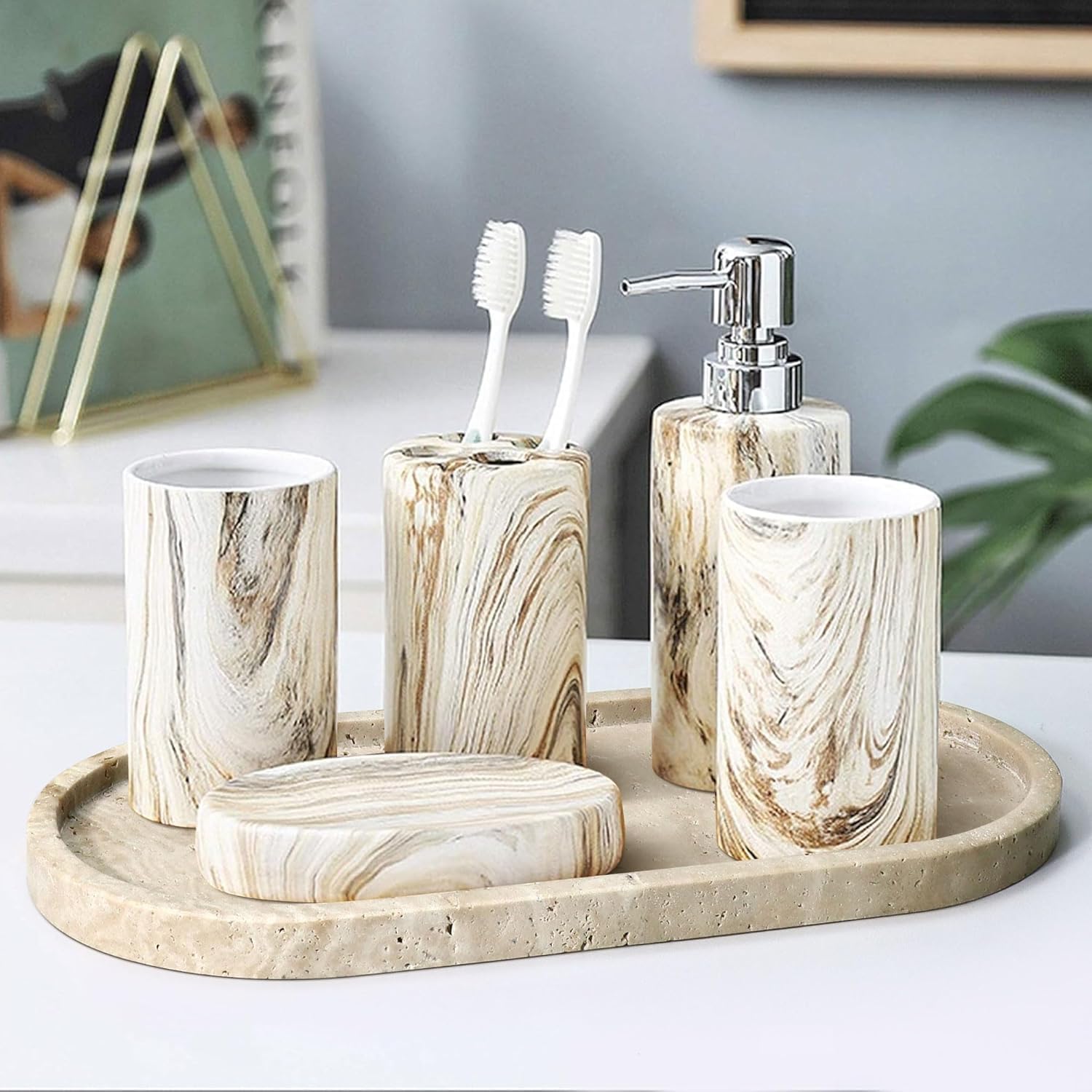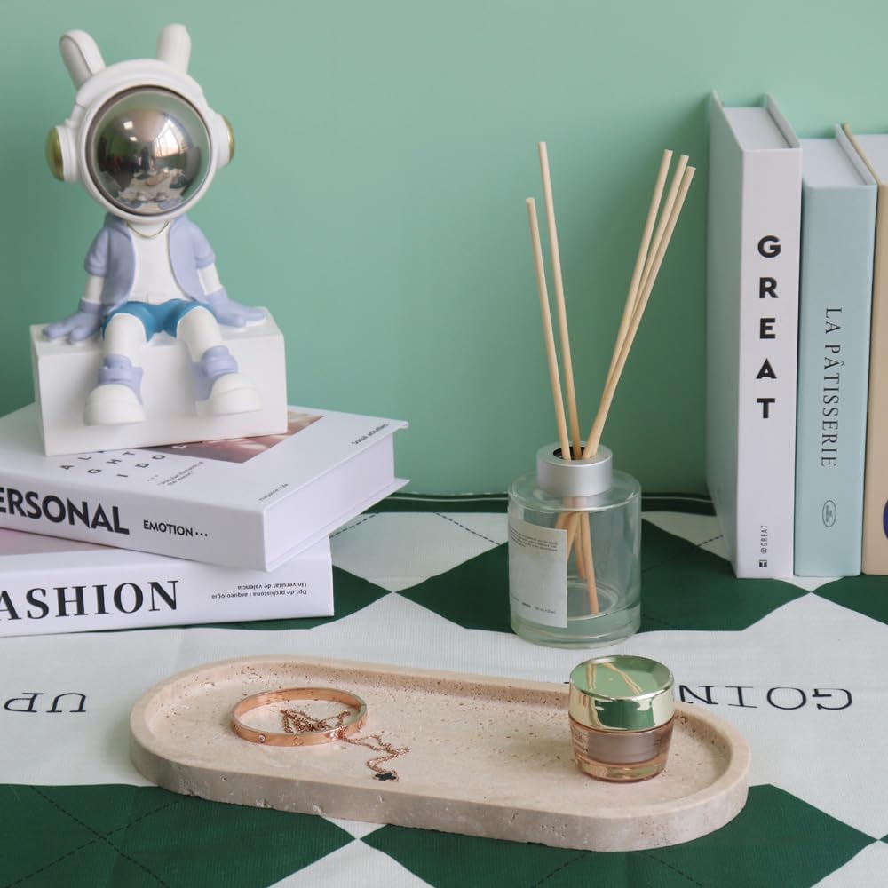 Natural Marble Tray, Oval Vanity Decorative Tray for Bathroom Counter, Countertop Stone Organizer, Catchall Tray for Kitchen, Perfume, Candles, Jewelry Dish Decorative Tray