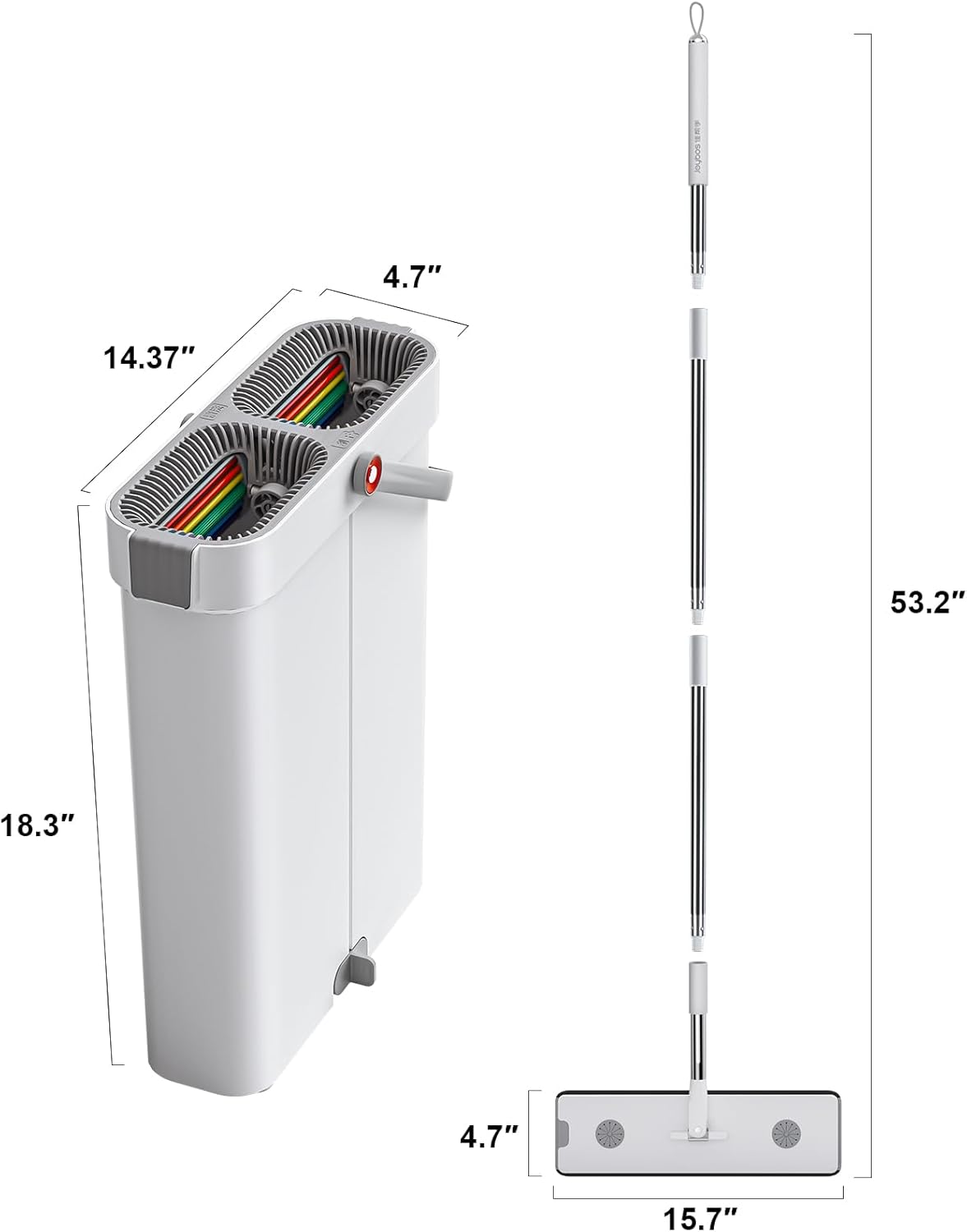 - [360° Spin ] Rotation flat mop-head can reach to any corners and those "under-the-whatever" places, much suitable to be a wet dry mop for walls, wall cleaner . There are suction cups on the bottom of the bucket to keep it from tipping over.