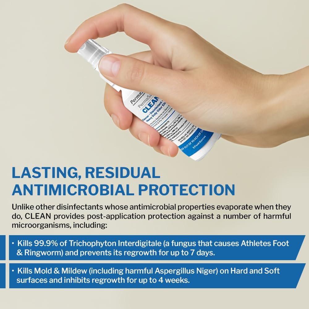 PermaSafe CLEAN, All-Purpose Hospital Disinfectant Cleaner; No Rinse, Hard, Soft & Food Contact Surface Sanitizer; Mold, Mildew and Fungi Killer; Odor Eliminator; Allergen Remover & More-3 Fl Oz-2 Pk