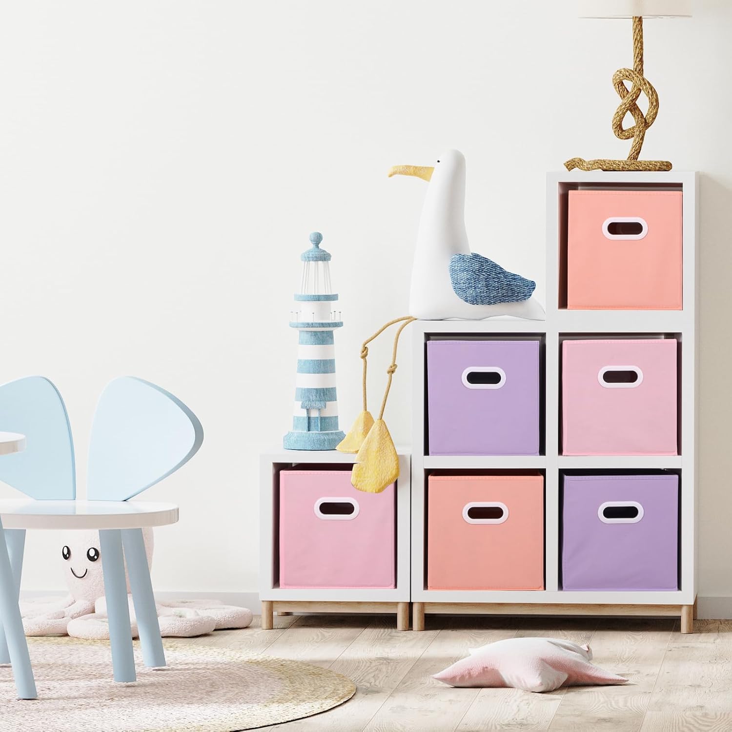 Stero Fabric Storage Cubes Bins, 13 inch Fun Colored Foldable Storage Baskets with Dual Plastic Handle for Home, Kids Room, Closet and Toys Organization, Multi Colored, Set of 6