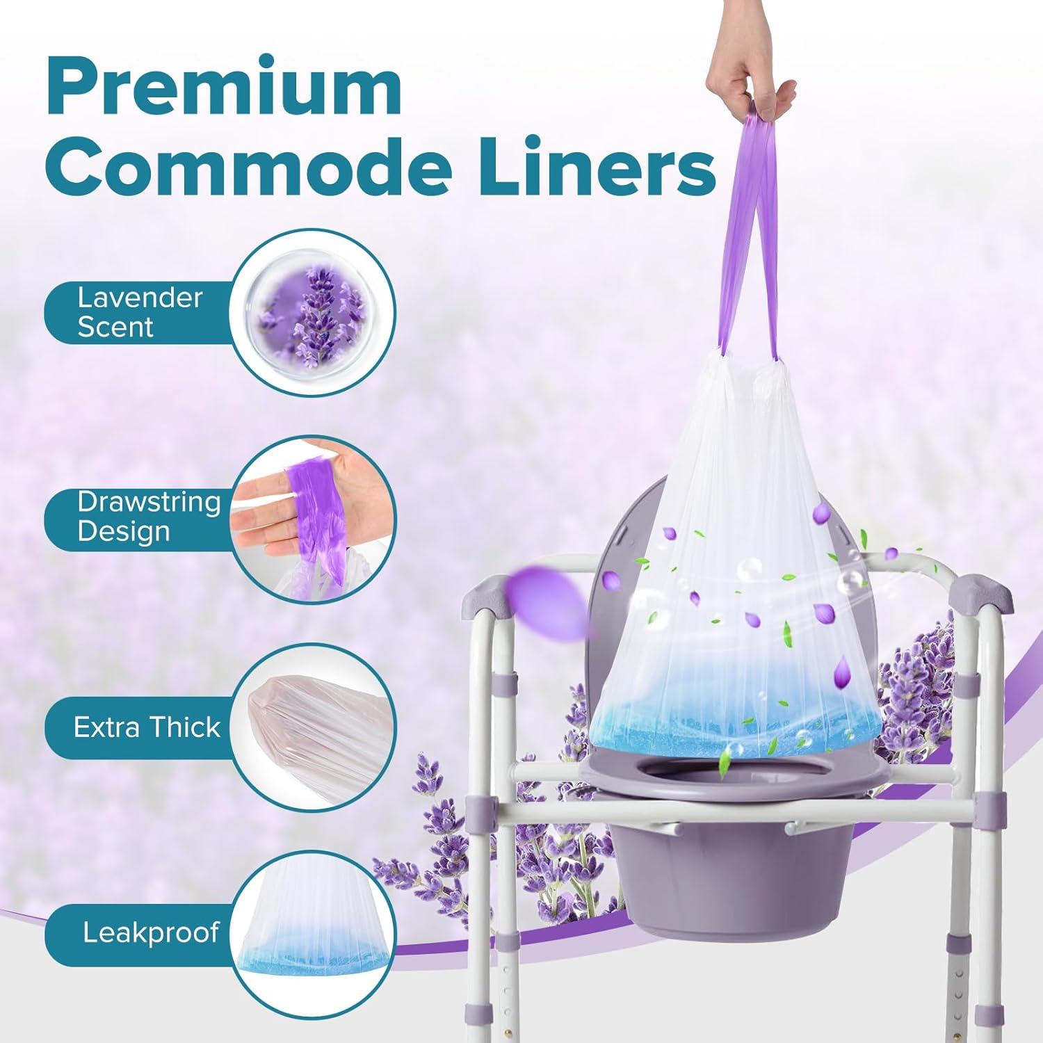 Maliton Bedside Commode Liners with Absorbent Pads, 60 Pack Disposable Bags and 60 Super Absorbent Pads, Vanilla-Scented Portable Sanitary Bag for Adult Toilets and Camping Toilets (60Bags+60Pads)