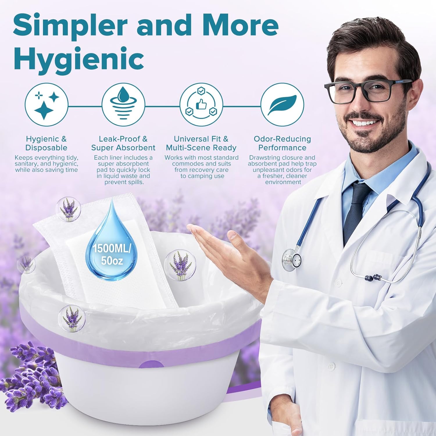 - Value Pack - Each Box Includes 60 Bedside Commode Liners + 60 Commode Pads, Meeting Long-Term Care Needs.