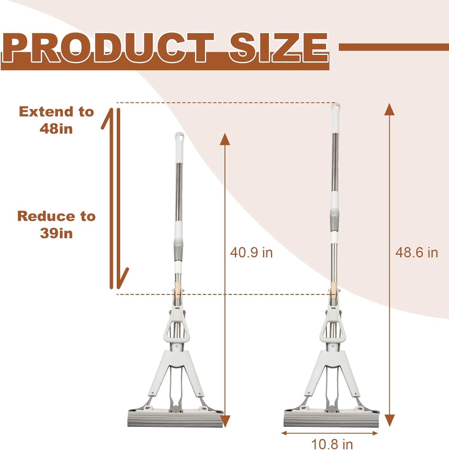 - ERGONOMIC LONG HANDLE: Designed to fit the human body's natural movements, the extended handle fully reaches 48 inches allows you to mop without bending over, reducing fatigue during cleaning and making large-area cleaning a breeze.