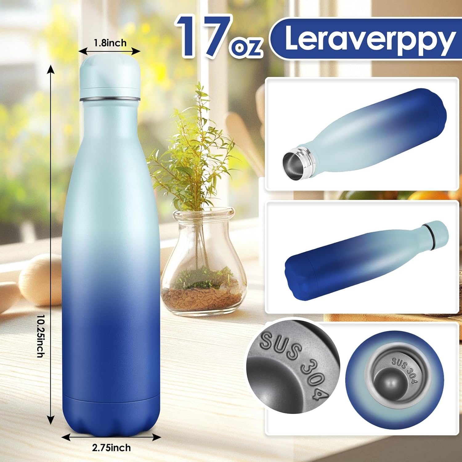 17oz Cola-Bottle Shaped Stainless Steel Leak-proof Water Bottle,Double Wall Vacuum Insulated Metal,Travel Mug For Sports Indoors & Outdoors,BPA-Free Kids Flasks,Green Blue(1 Pack)