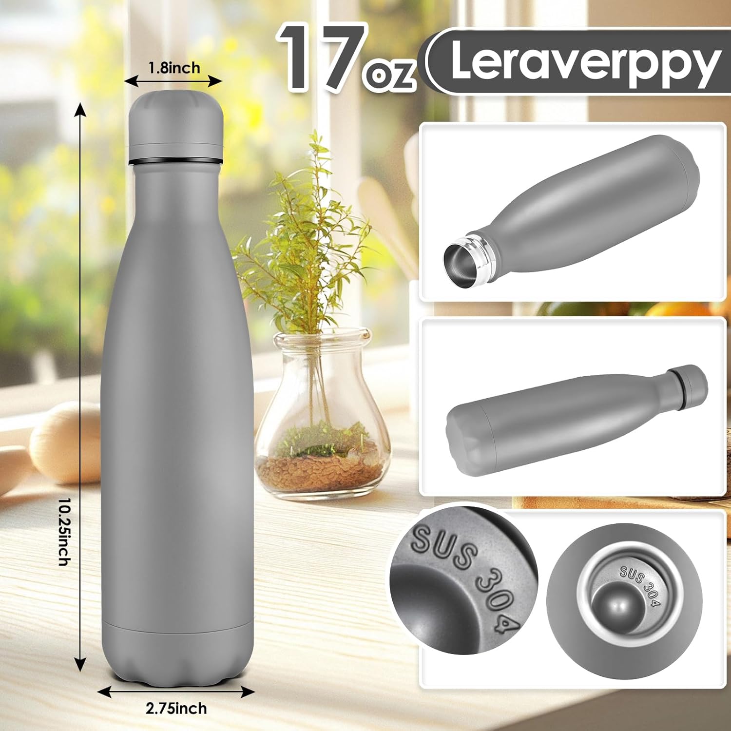 17oz Cola-Bottle Shaped Stainless Steel Leak-proof Water Bottle,Double Wall Vacuum Insulated Metal,Travel Mug For Sports Indoors & Outdoors,BPA-Free School Kids Flasks,Gray(8 Pack)