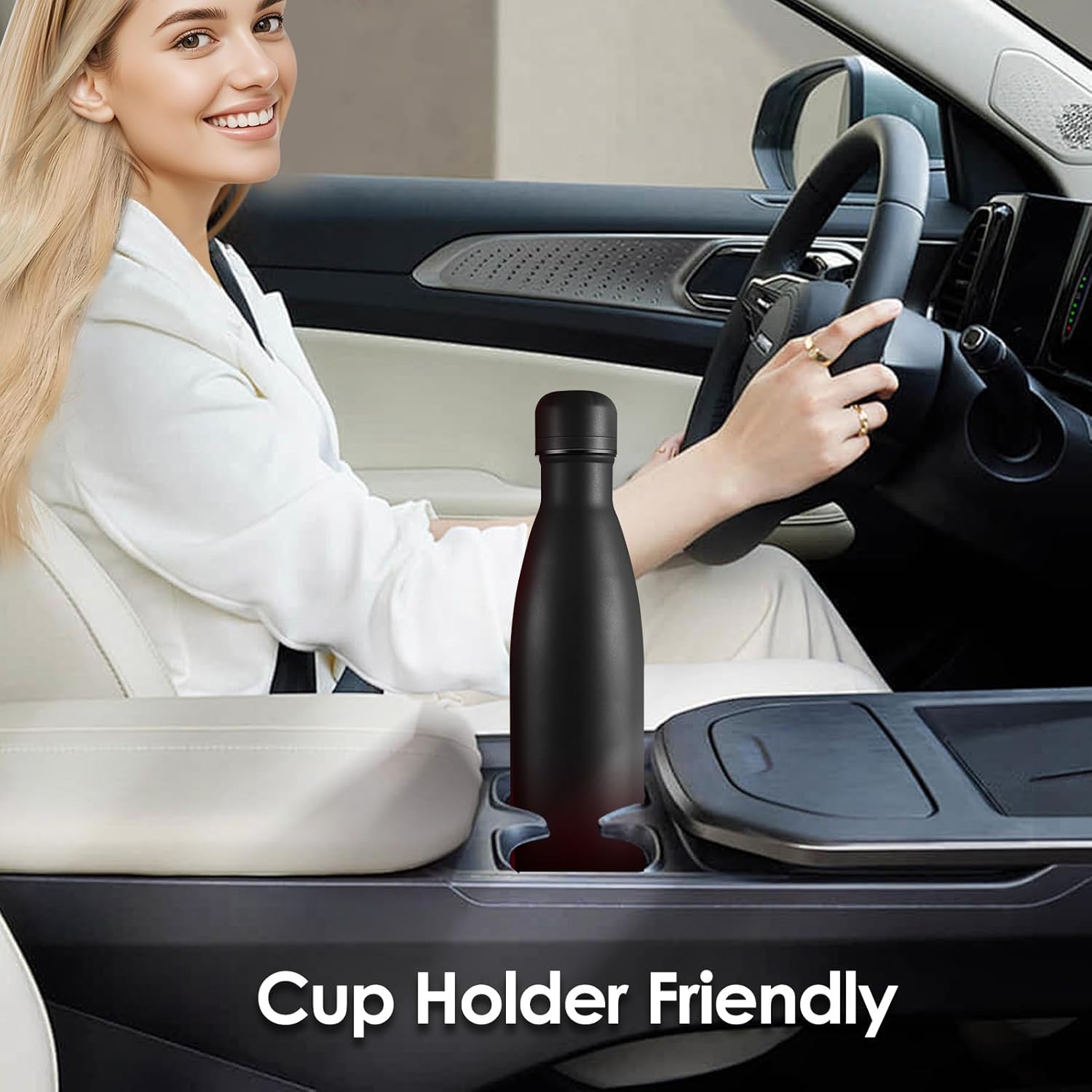 - 《Portable Size and Wide Use》17oz insulated water bottle is the good size for kids and adults.With a portable lid and light weight so you can carry it anywhere with ease.The Convenient bottle is the good choice for the bike or car cup holder,side pockets of backpack,gym,school,work,camping hiking biking beach trips,picnics and any other indoor or outdoor activity.