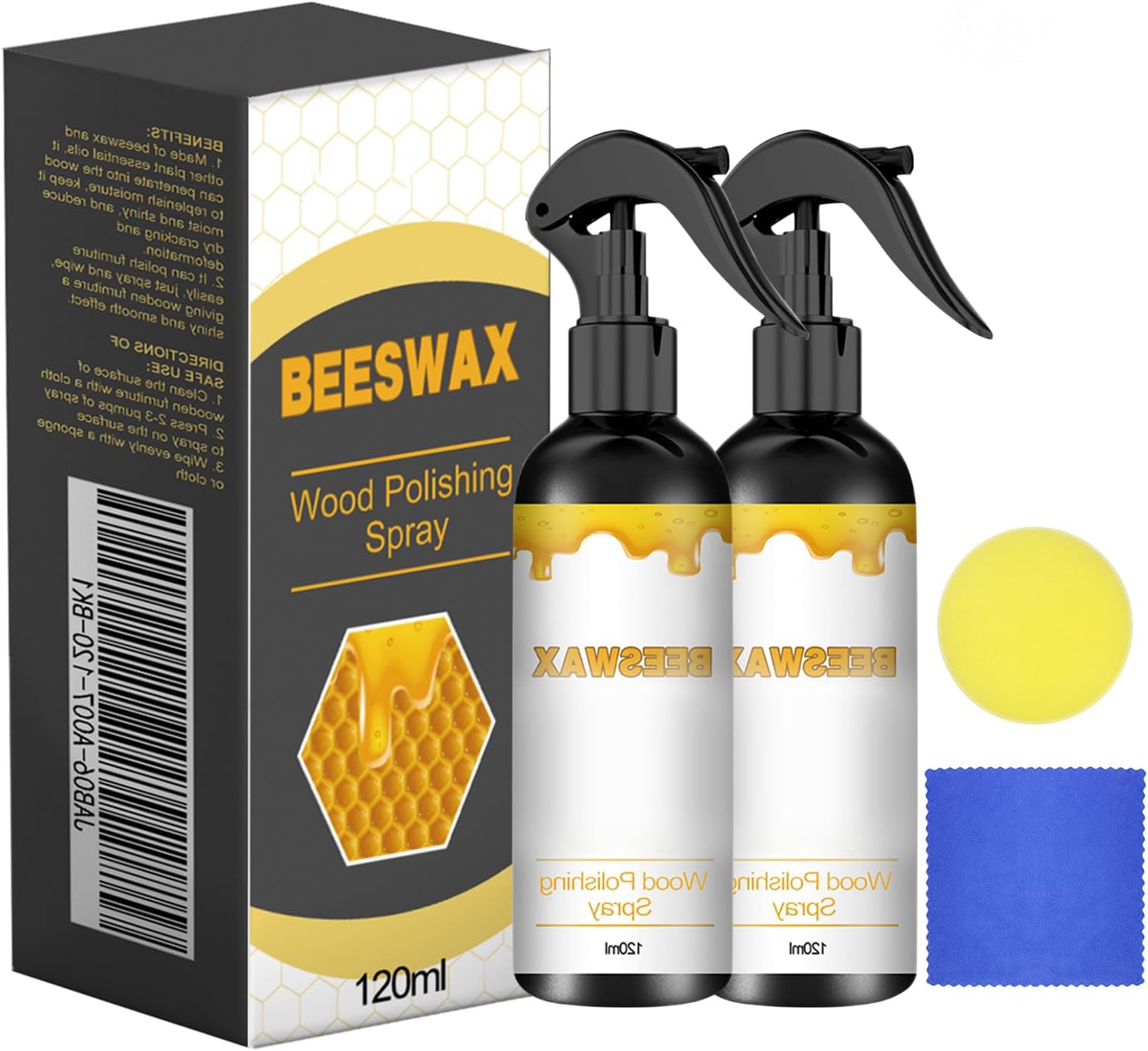 2Pcs Natural Beeswax Care Spray & Restorer, 2025 New Bees Wax Furniture Polish and Cleaner, Beeswax Furniture Polish for Wood, For Living Room, Kitchen, Leather and Furnitures Polishs - 120 ML
