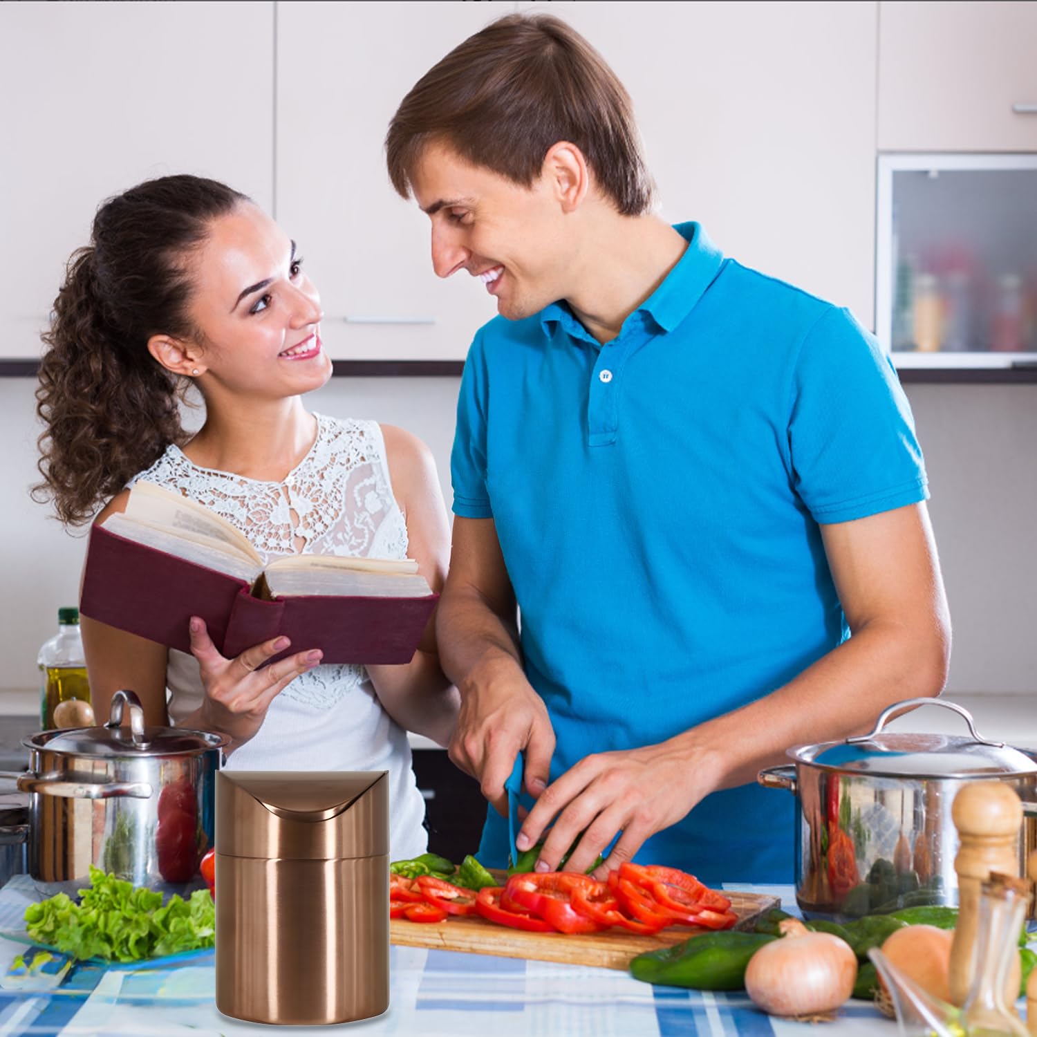 - PREMIUM MATERIAL - Our countertop trash can is made of 100% brushed stainless steel, firm and durable, rust-resistant, enough to endure the wear and tear of everyday use for longer without losing its aesthetic appeal.