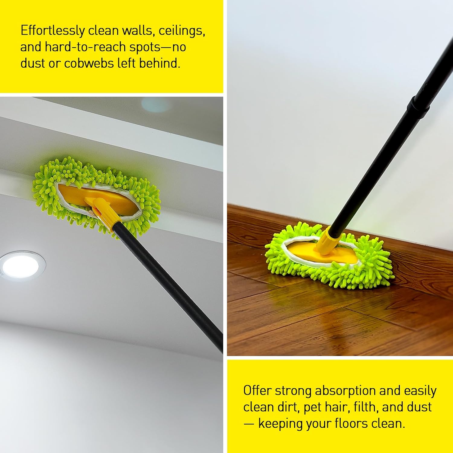 - 【What You Get】 1x V-shaped scrub brush head, 1x Microfiber Chenille Cloth, 2x Iron Connecting Poles, 1x Telescopic Iron Pole. Please feel free to contact us if you have any issues. We will reply within 24 hours.