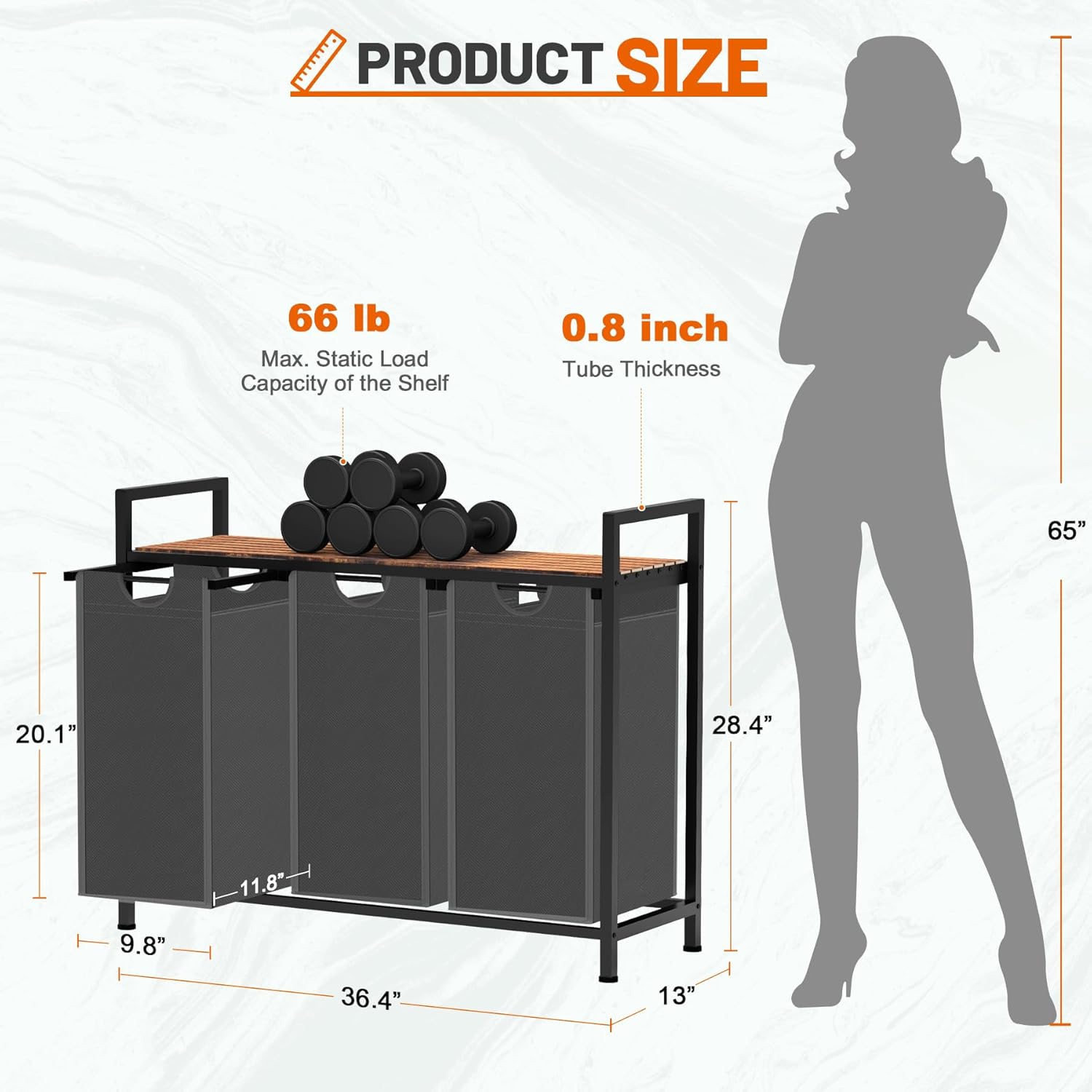 - Construction Design - With 4 adjustable feet, you will not have to worry about stability, and it is also adaptable to different spaces. Adjustable feet protect your floor from scratches. Strong steel frame and water-resistant wood top offer stable support. This laundry hamper comes with detailed instructions manual and all hardware needed, it is easy to assemble.