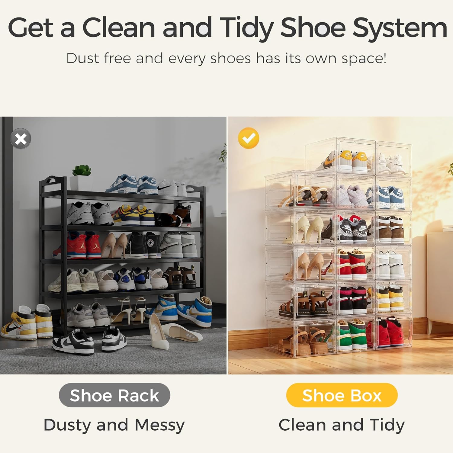 - Ultra Clear for Display: Standout display-ready design with 360° clear panels. Unlike standard half clear shoe boxs, our hignly clearly magnetic doors let you instantly locate and showcase your sneaker collection like retail displays.