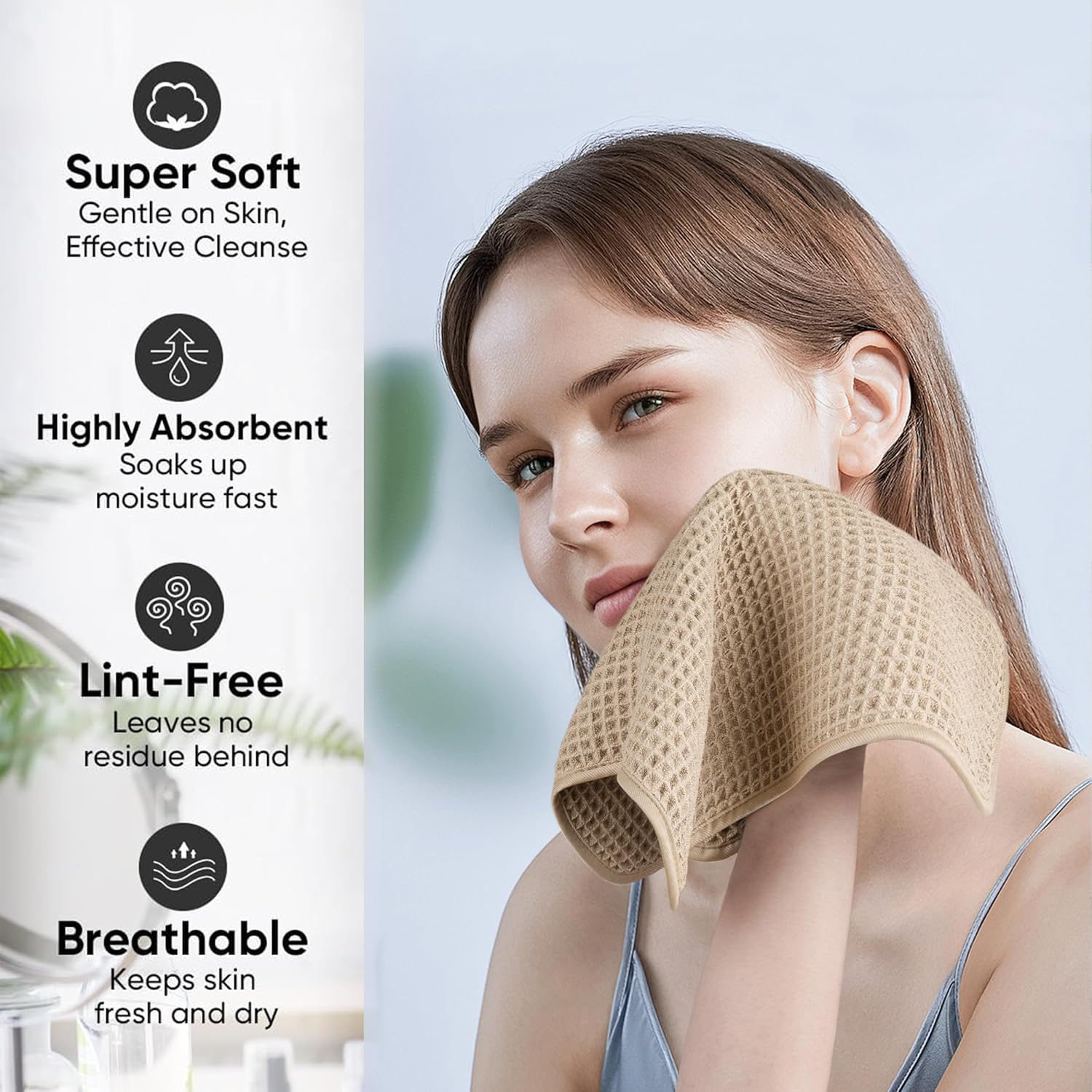 Microfiber Waffle Face Towels, 2 Pieces, Soft, Absorbent, Fast Drying, Lint Free (Beige)