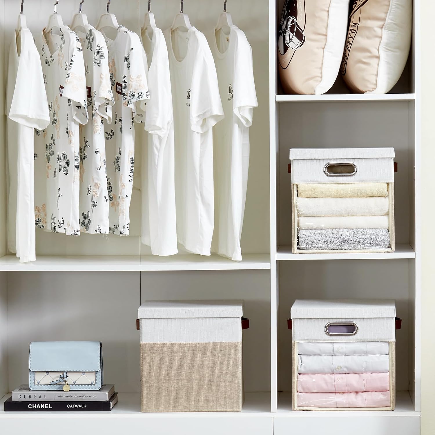 - Excellent Quality: Clear window cube storage organizer is made of high quality linen, soft, breathable and odorless. In addition the storage cube is paired with reinforced thick cardboard, not easy to tear and deform, durable, for your long-term storage needs. The storage basket with lid protects against dust, keeping your items neat and clean.
