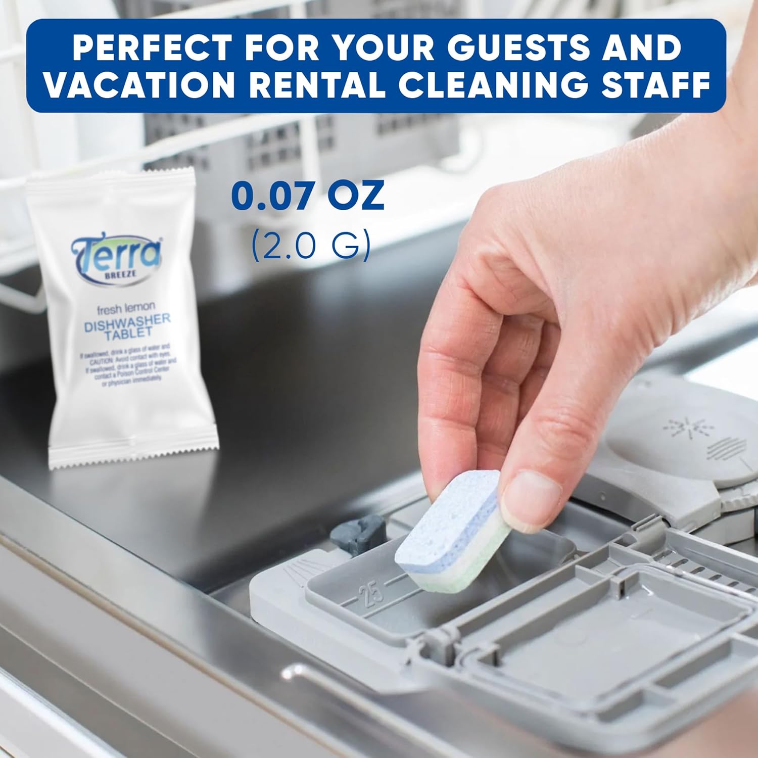 - INDIVIDUALLY WRAPPED FOR VACATION RENTALS & HOTEL KITCHENS - Each dishwasher tablet is individually sealed to prevent clumping, crumbling, or moisture exposure—ideal for vacation rentals, extended stay properties, hotels, motels, and guest rooms. The mess-free packaging keeps storage clean and organized while offering a professional, travel guest-ready touch. Great for short-term rental hosts who need simple, sanitary solutions that travel well and stay fresh.