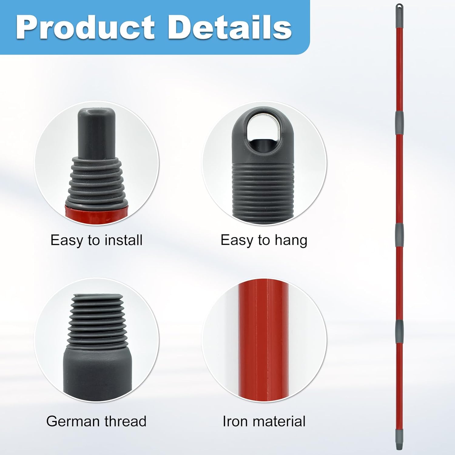 - 4-Section Metal Iron Mop Handle for Ocedar Spin Mop & H2pro Flat Mop: Mop handle is made of high-quality iron material, it's more solid and durable than normal stainless ocedar mop handle, ensuring that will long-lasting to use. And the surface of the mop handle is treated with baked red paint process technology to ensure a firm grip when cleaning, preventing slips.