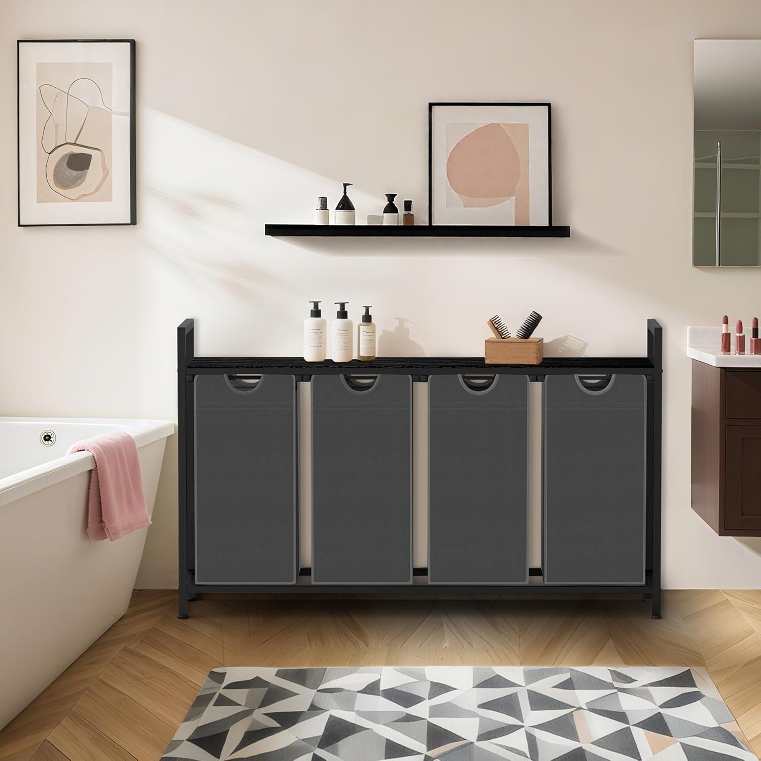 - Large Capacity - Featuring a 40 gallons capacity and an integrated open-shelf design, this laundry hamper helps you make the most of your storage space, easily accommodating both your clothes and accessories.