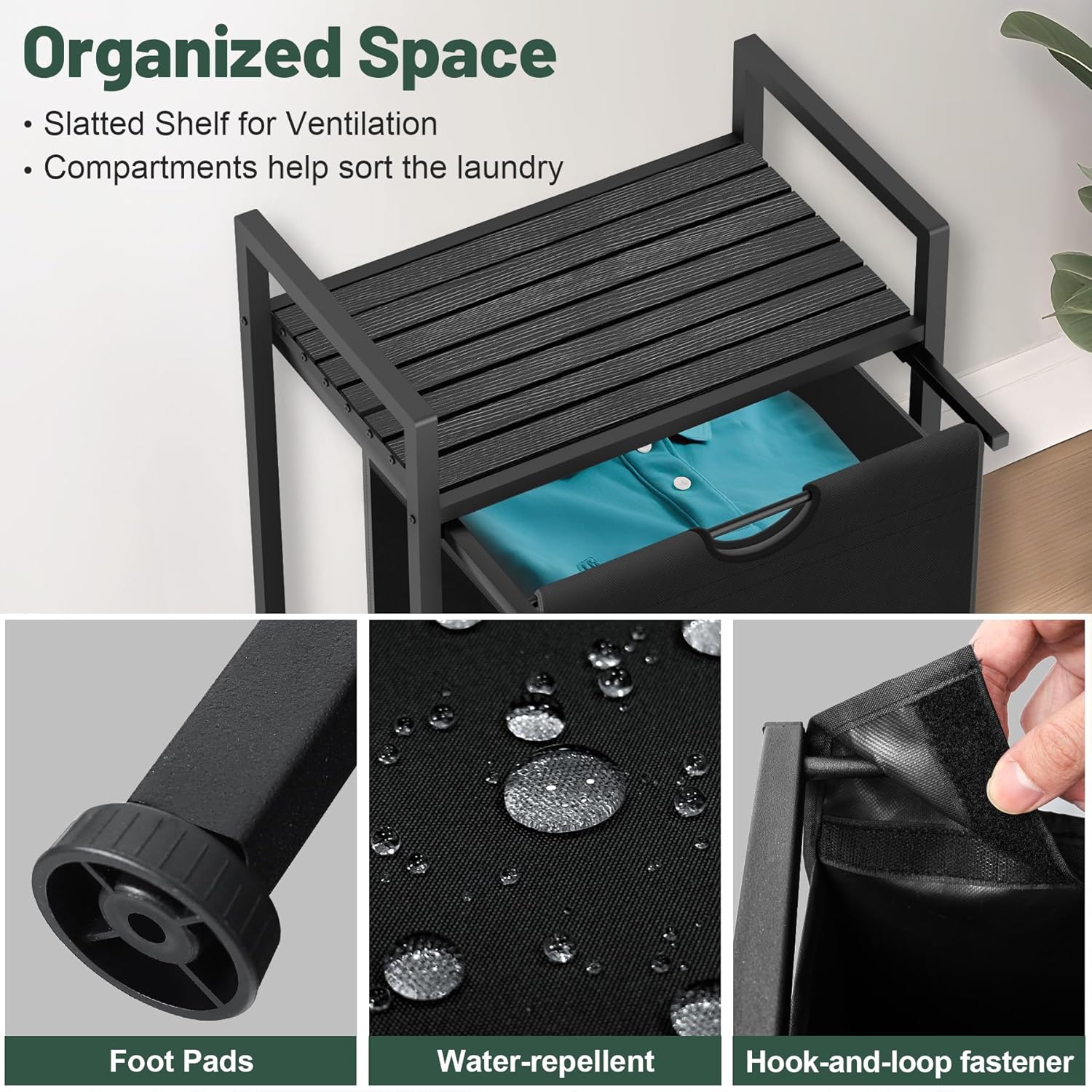 - Large Capacity - Featuring a 16 gallons capacity and an integrated open-shelf design, this laundry hamper helps you make the most of your storage space, easily accommodating both your clothes and accessories.