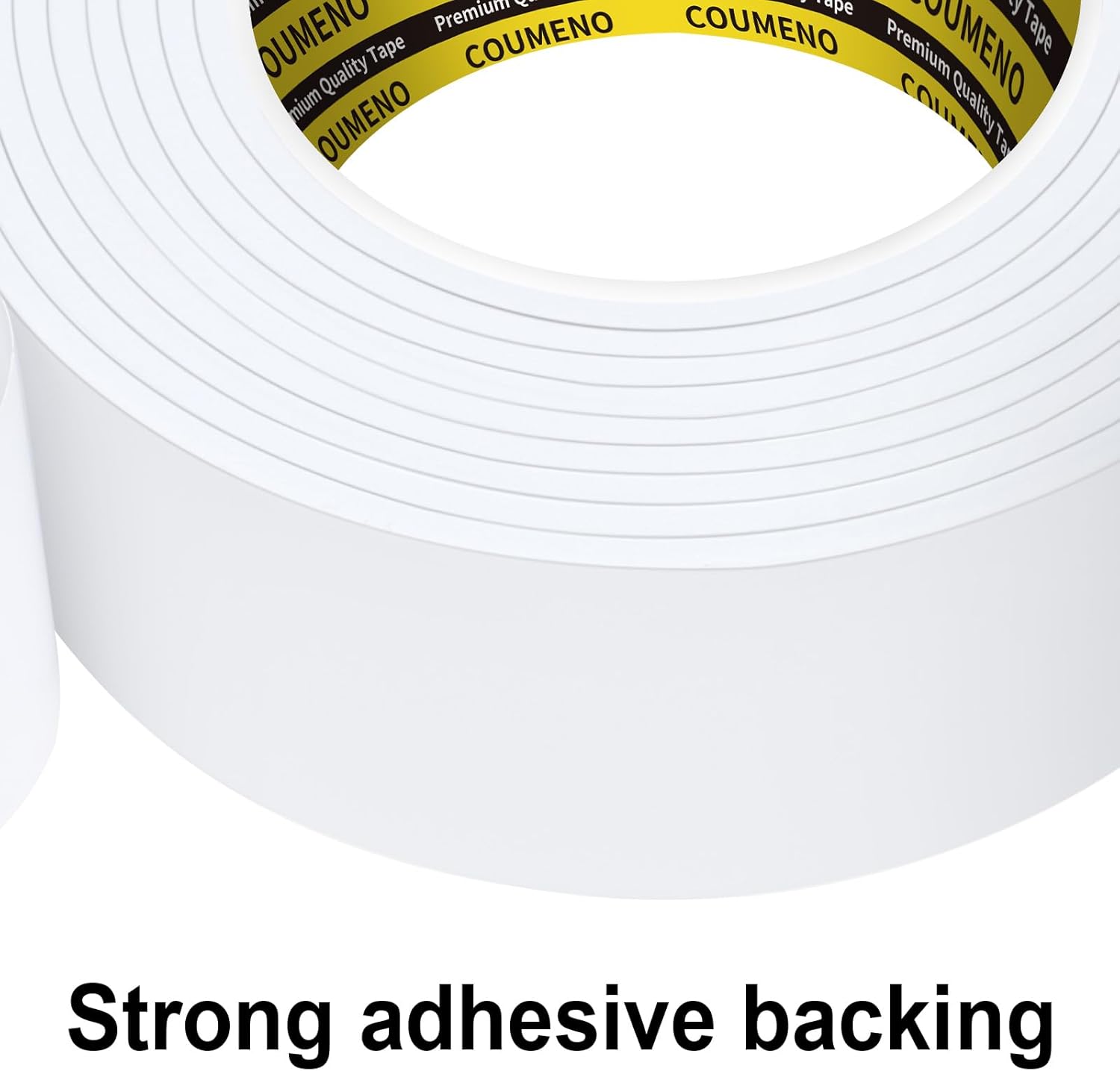 2 Pack EVA Single-Sided Adhesive Foam Tape 1.2inx16.4FT Single-Sided Sealing Strip Foam Pad Sponge Tape Window Weatherproof, Self-Adhesive Insulation Sealing Tape White