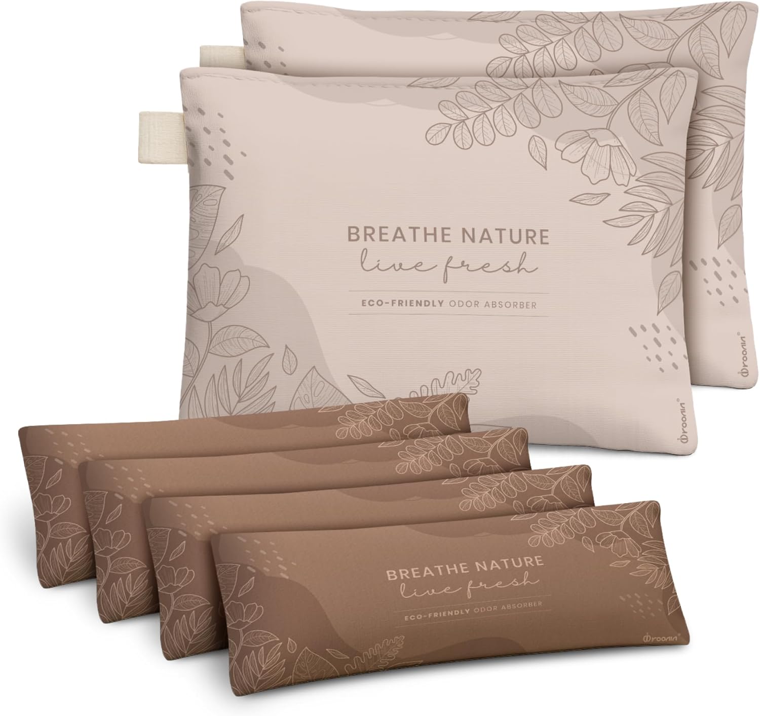 Roonin Activated Charcoal Odor Absorber - Bamboo Charcoal Air Purifying Bag - Activated Charcoal Bags Odor Absorber Packets - Home Deodorizer Odor Eliminator (6-pack)