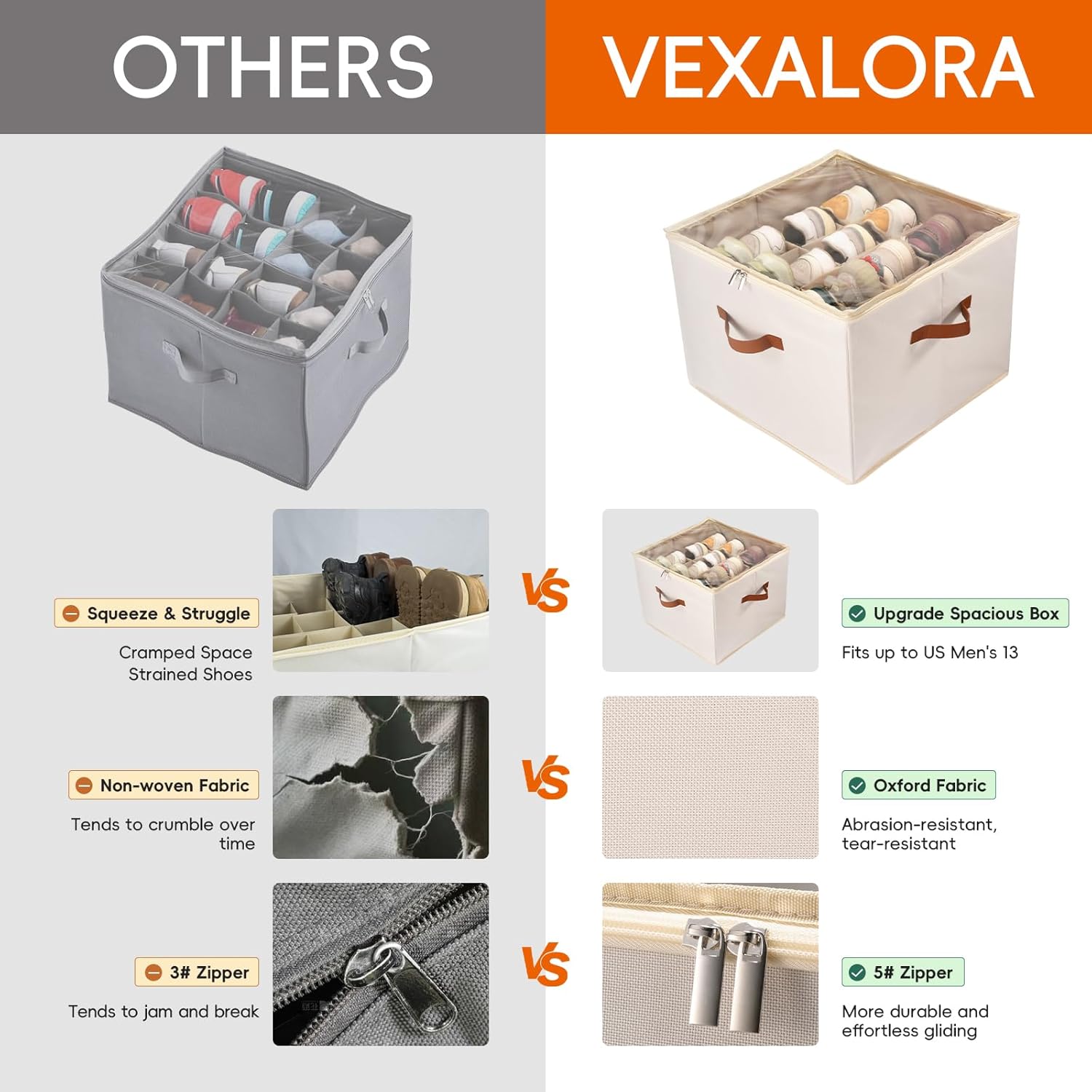 - 【Sturdy & Reinforced Structure】Made of tear-resistant Oxford fabric, which is more durable than non-woven fabric, the sides and bottom are supported by sturdy, thickened cardboard to provide a robust structure that won't collapse over long-term use