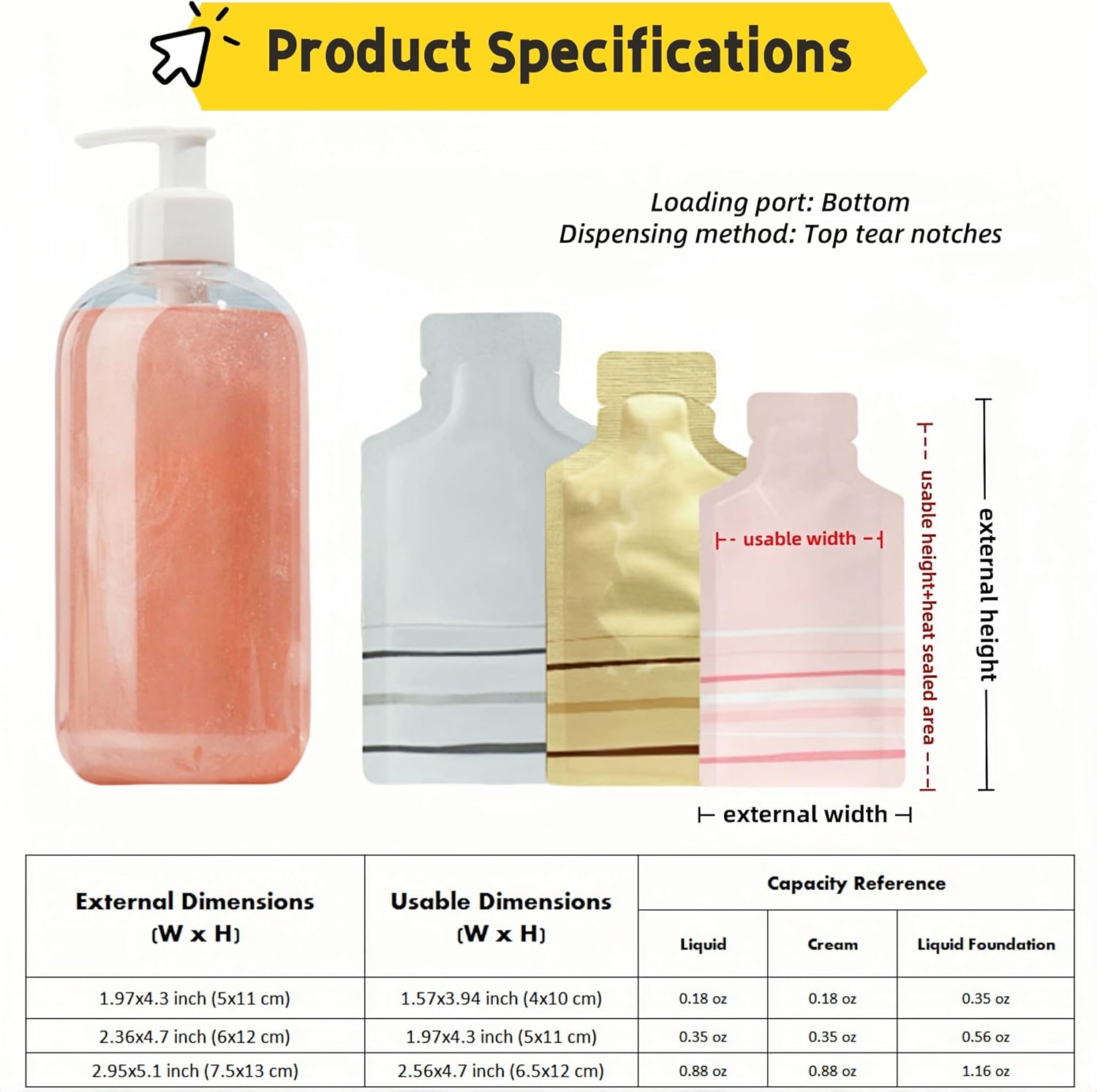 100 Pack 2.95x5.1 inch Heat Seal Sample Mylar Packets for Portable Travel Toiletries Empty Disposable Liquid Shampoo Pouch Single Serving Coffee Powder Condiments Food Storage (Pink)