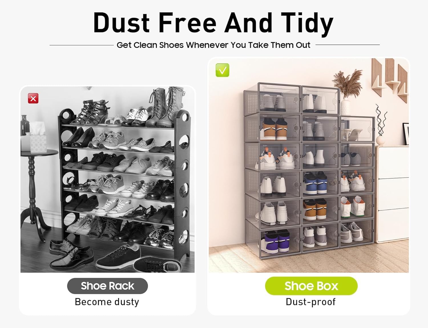 - Shoe Organizer Solutions: More dustproof than shoe racks, ventilated and breathable than shoe cabinets