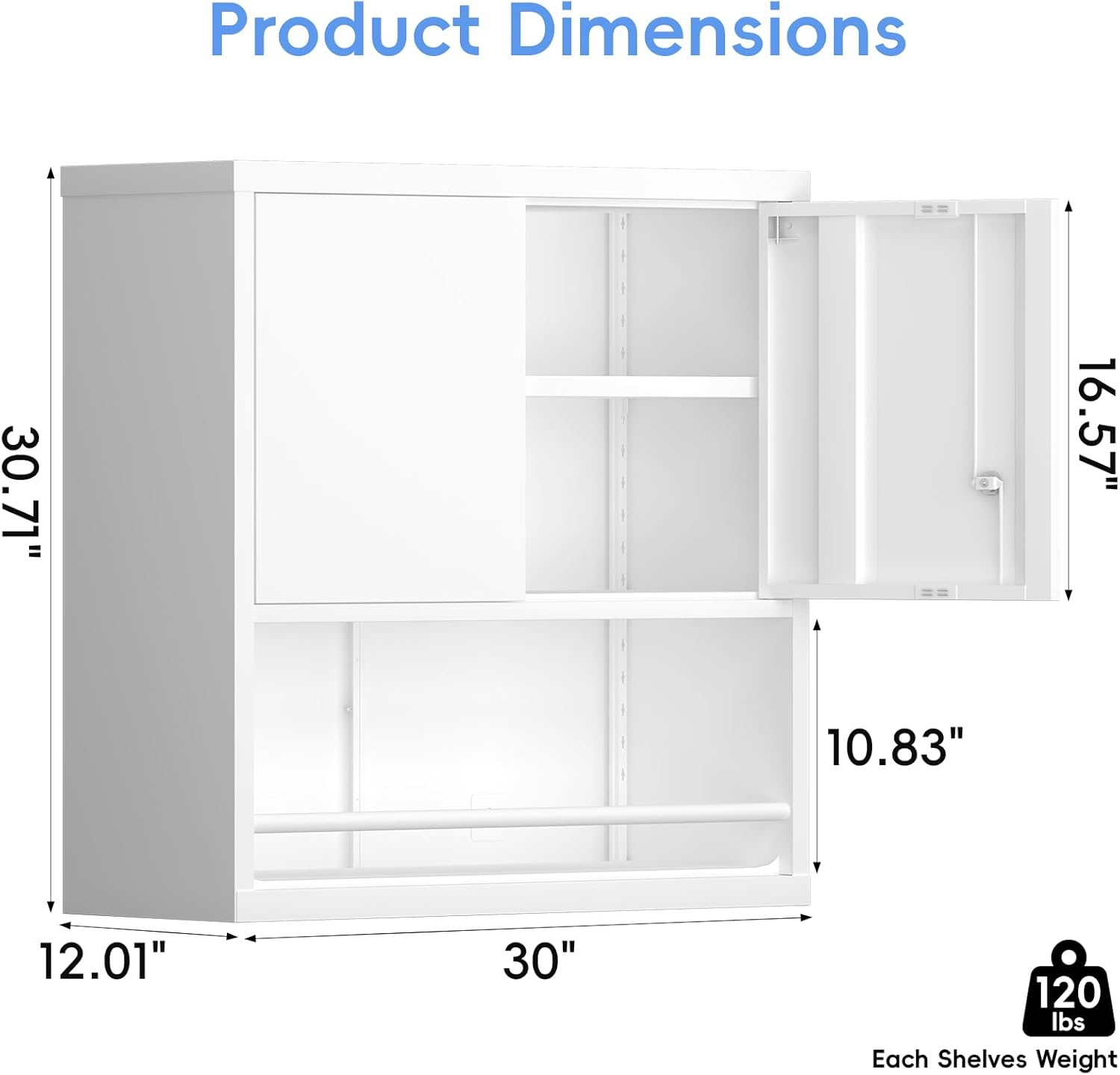 - [Durable and Space-Saving Design] Made from high-quality steel, this wall cabinet is built to last. Its compact design makes it ideal for tight spaces while offering generous storage capacity.