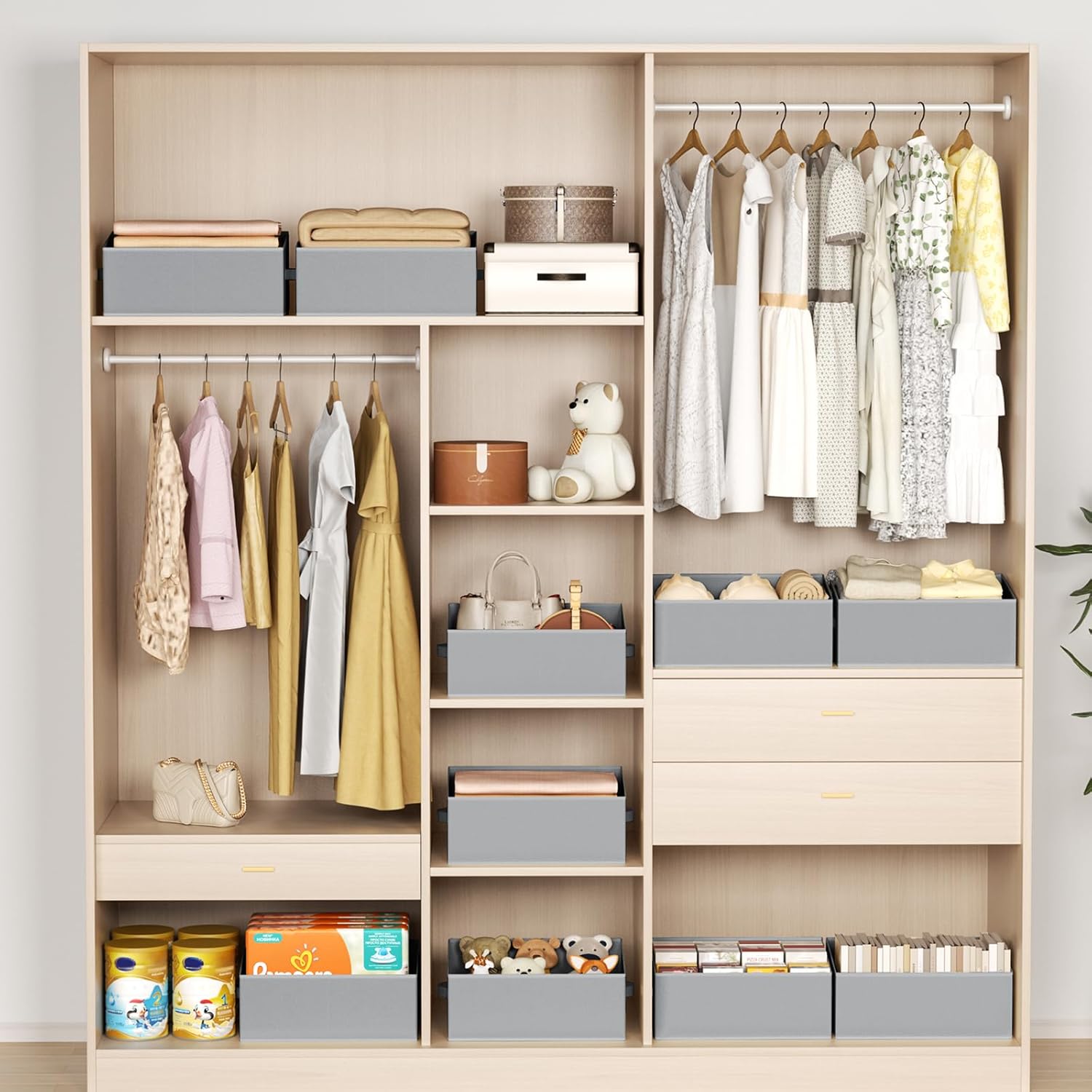DIMJ Large Closet Storage Bins 8 Pack - Fabric Trapezoid Closet Organizer Bin, Foldable Storage Baskets for Shelves, Closet Shelf Organizer, Clothing Storage Box for Toys, Books, Towel, Clothes, Gray
