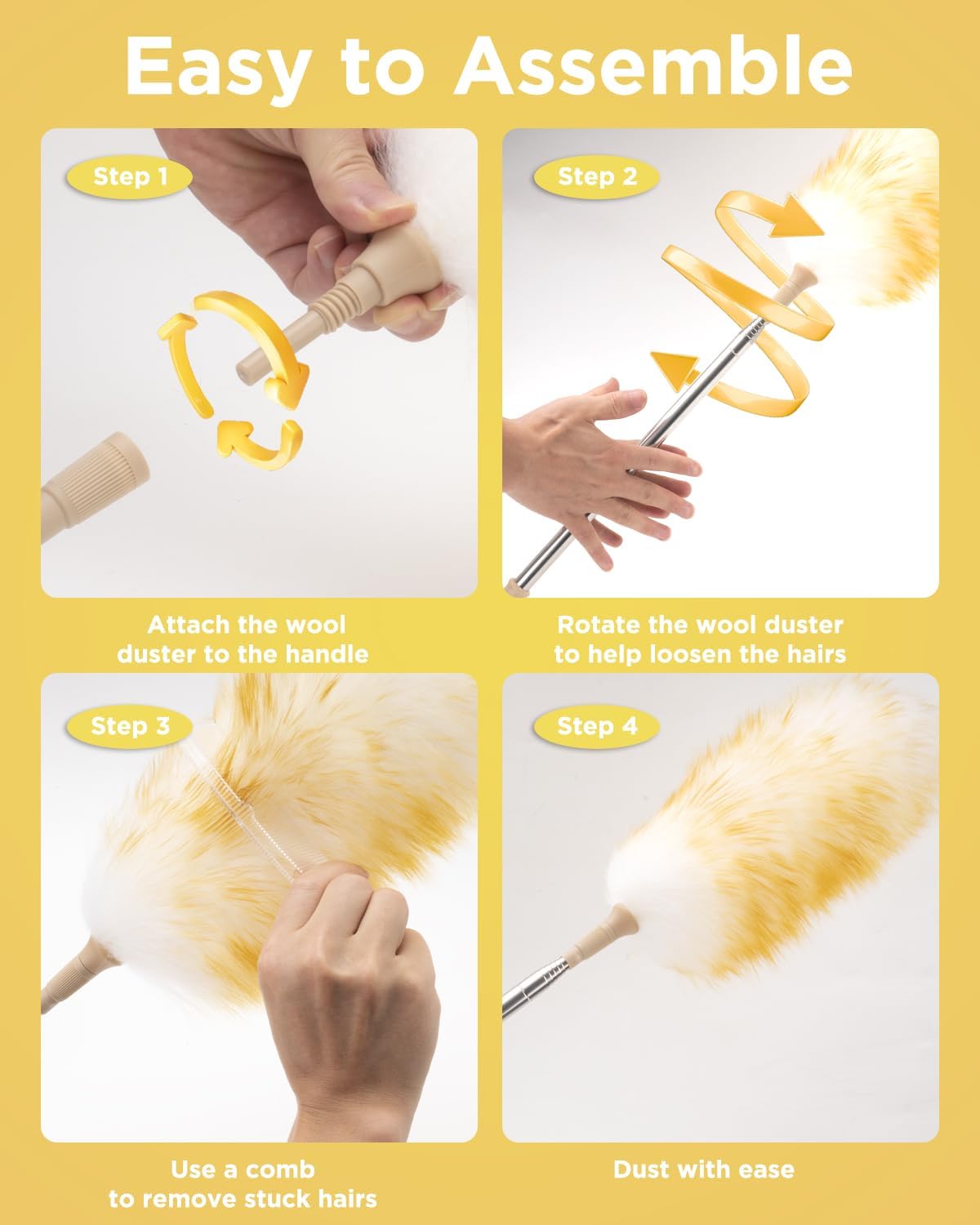 - 【PREMIUM WOOL】Crafted from ultra-soft, high-quality wool, it not only delivers a luxuriously smooth feel but also traps 95% of dust without surface damage.
