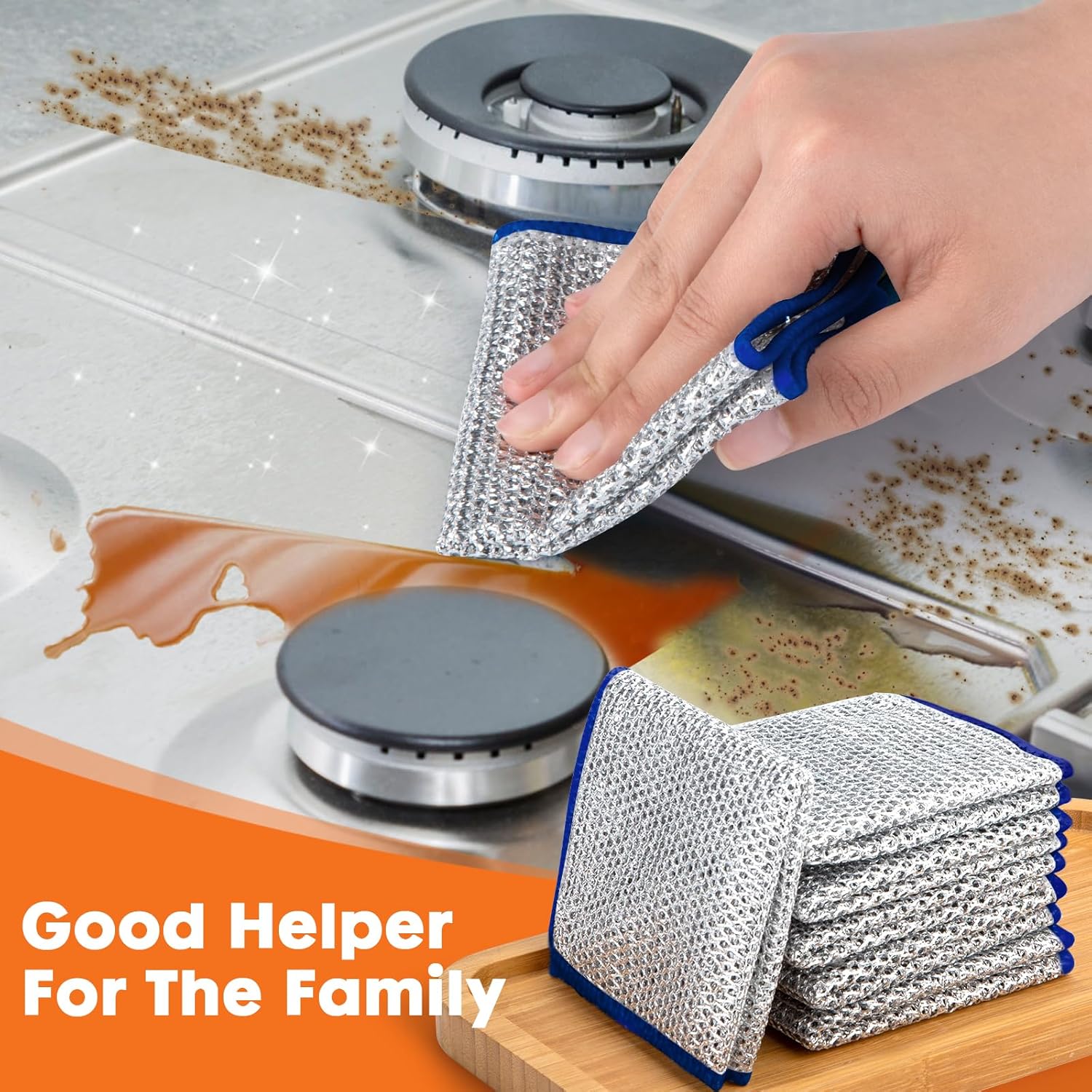 - SCRATCH-FREE: Wire dishwashing rag is made of high-quality materials to deeply clean surface dirt.It's not like Steel Wool Scrubbers, Dish rags for washing dishes also ensures that they do not scratch or damage the surface of non-stick cookware and other kitchen utensils, allowing you to clean with confidence.