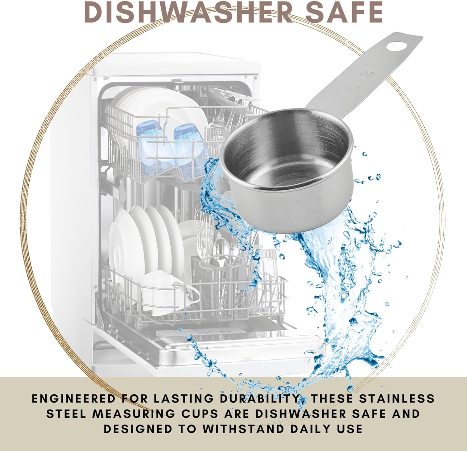 - CLEAR ENGRAVED MEASUREMENTS: Deeply etched markings in both imperial (1/8 cup) and metric (30 ml) units stay legible even after repeated dishwasher cycles—no fading or rubbing off.