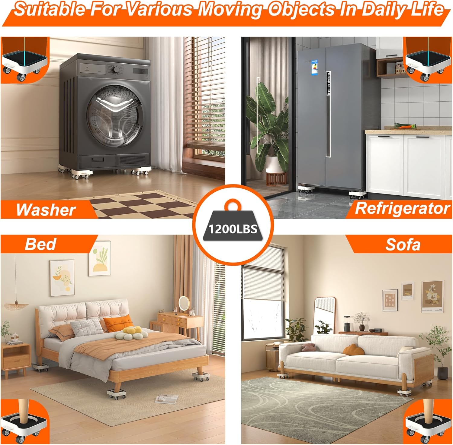 - Industrial-Grade Durability:Furniture moving wheels made of reinforced PP+PVC(1.5mm thick pry bar)and TPR silent wheels,supporting up to 1200 lbs without bending or cracking.Scratch-resistant for long-term use.