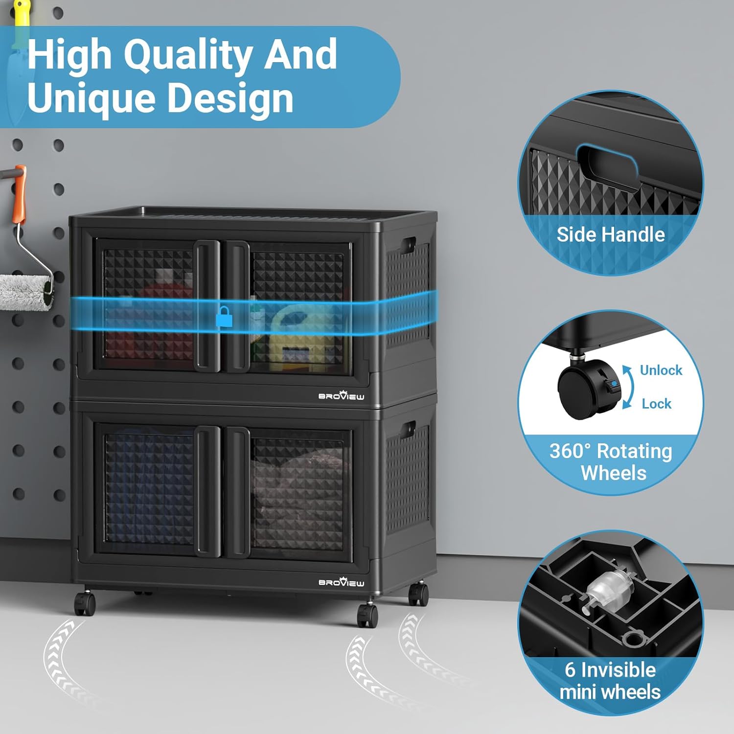 - 【Lock Doors & 360° Smooth-Glide Wheels】Dual safety upgrades:✓ Lockable doors prevent accidental spills—superior to magnetic closures; ✓ 4 multi-directional wheels (choose hidden or swivel styles) rotate 360° for effortless mobility. Roll heavy loads across carpets or hard floors with minimal force. Ideal for reorganizing spaces, deep cleaning, or relocating items. Children and seniors maneuver it freely.
