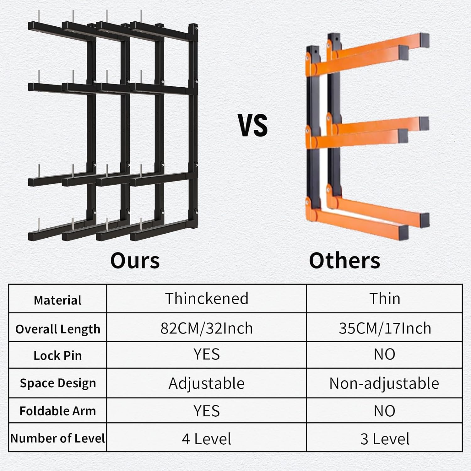 - VERSATILE ADJUSTABLE LUMBER RACK: Customize shelf heights to fit store skis, pipes, surfboards, tools, golf clubs, or lumber – all in one space-saving rack! Includes anti-slip locking pins to Prevent items from slipping.