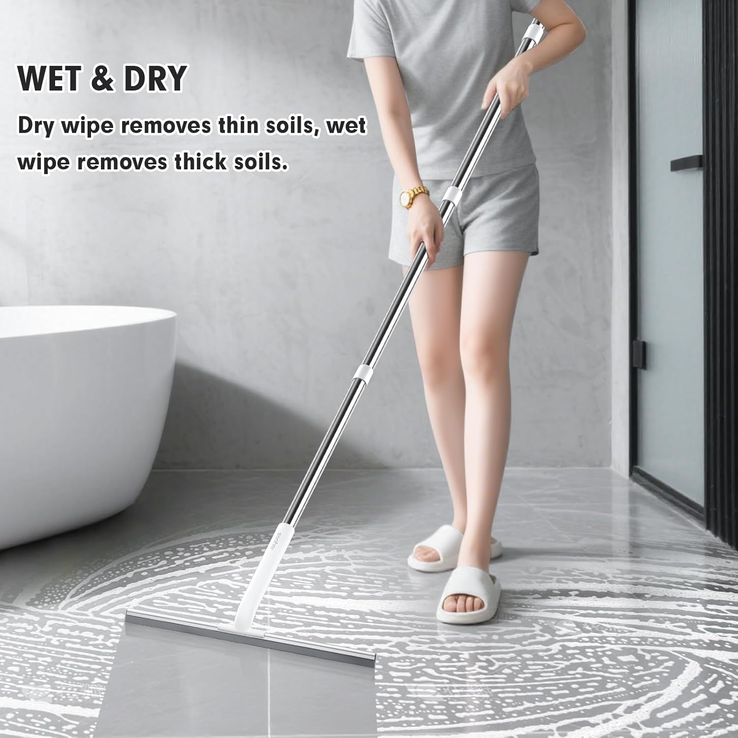 - Adjustable Long Handle: The extendable handle adjusts from 12" to 62" and is designed with a locking mechanism for added stability. Customize the length of this floor squeegee heavy duty to your comfort level with a simple click and lock, ensuring a secure and effective cleaning experience.
