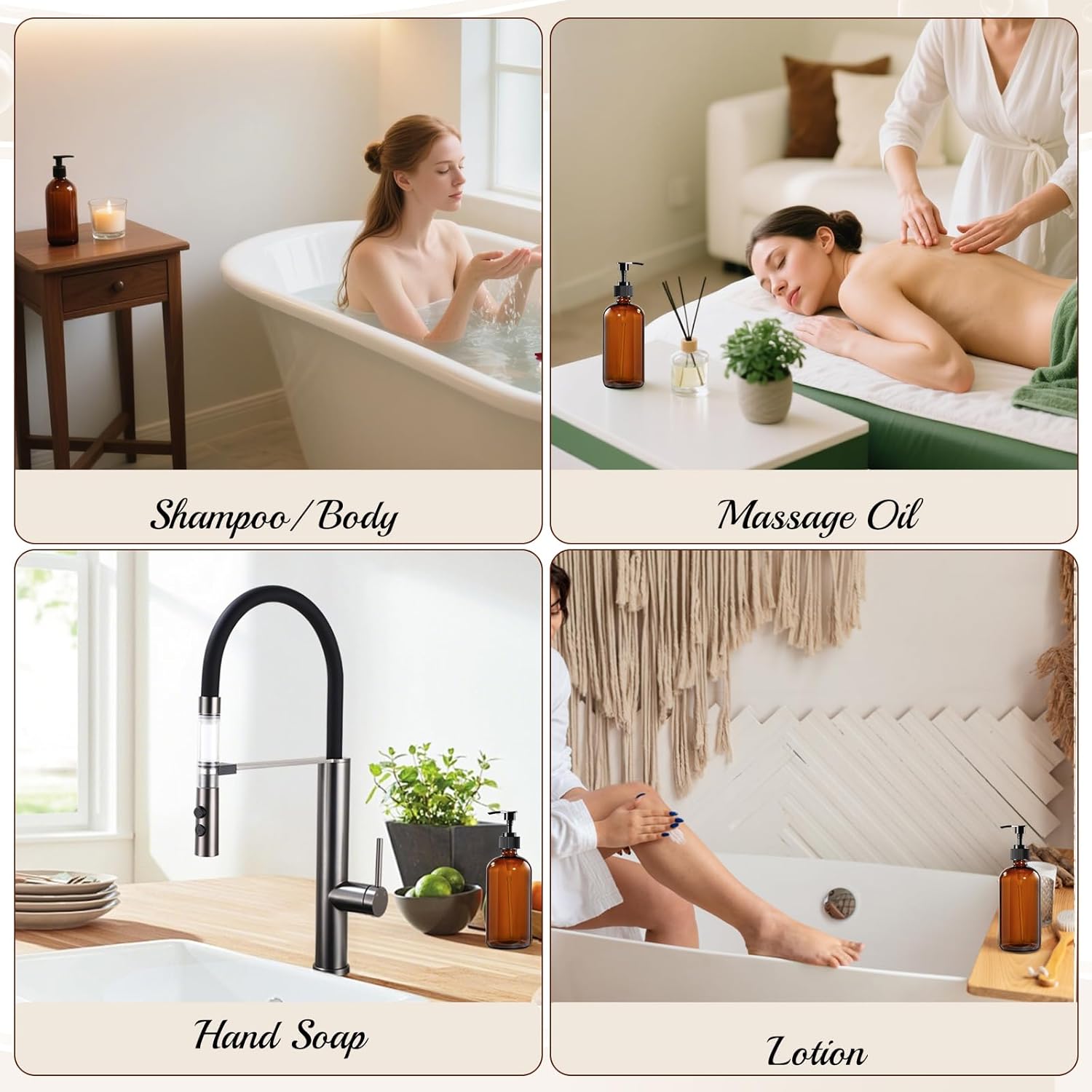 - Multipurpose & Minimalist: These apothecary-style glass pump bottles enhance any countertop. Use them as a shampoo dispenser, lotion dispenser, or hand soap bottle. Great for home spa setups, farmhouse kitchens, or modern minimalist bathrooms.