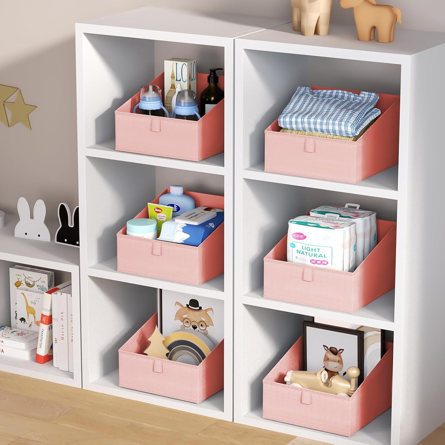 DIMJ Closet Storage Bins 8 Pack - Fabric Trapezoid Closet Organizer Bin, Foldable Storage Baskets for Shelves, Closet Shelf Organizer, Clothing Storage Box for Toys, Books, Towel, Clothes, Pink
